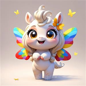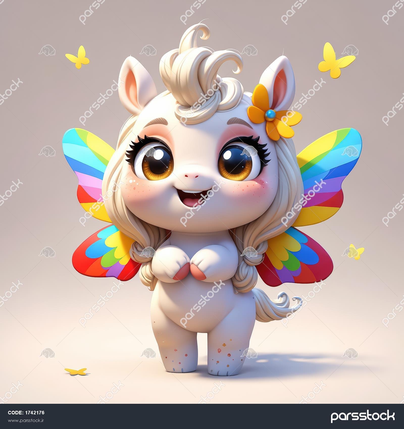 یونیکورن بدون شاخ با بال‌های رنگین‌کمان و گل زرد برای تابلوی اتاق کودک