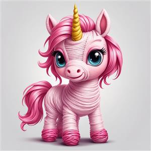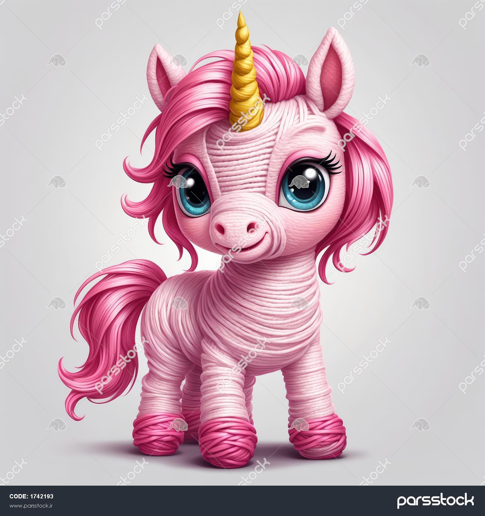 یونیکورن صورتی بافتنی با شاخ طلایی برای چاپ روی بوم و محصولات کودک