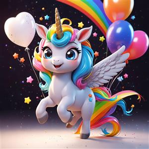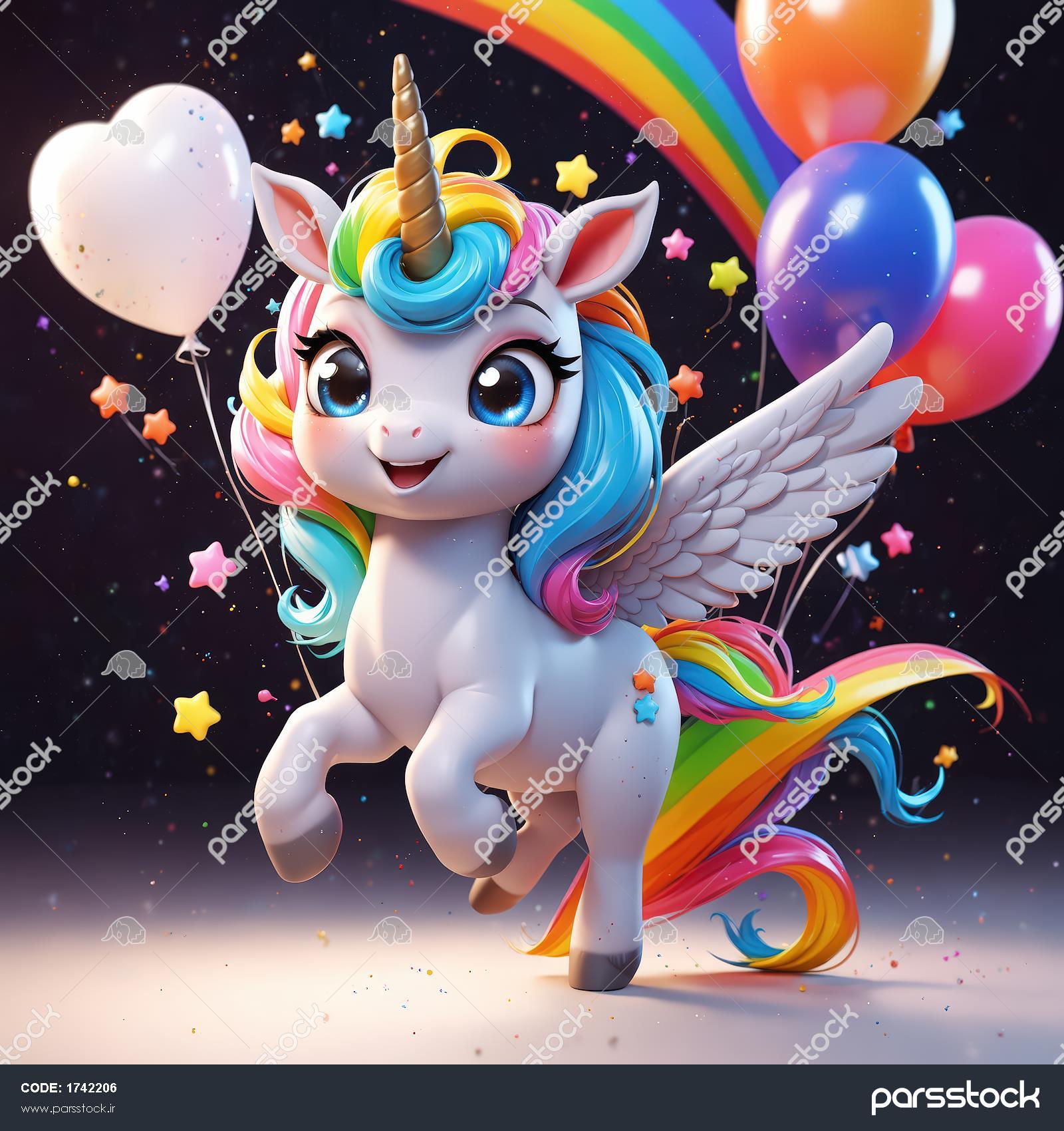 یونیکورن بالدار رنگین‌کمان در پس‌زمینه کهکشانی برای تابلوی اتاق کودک