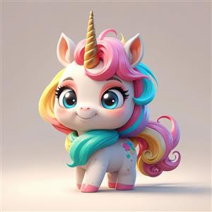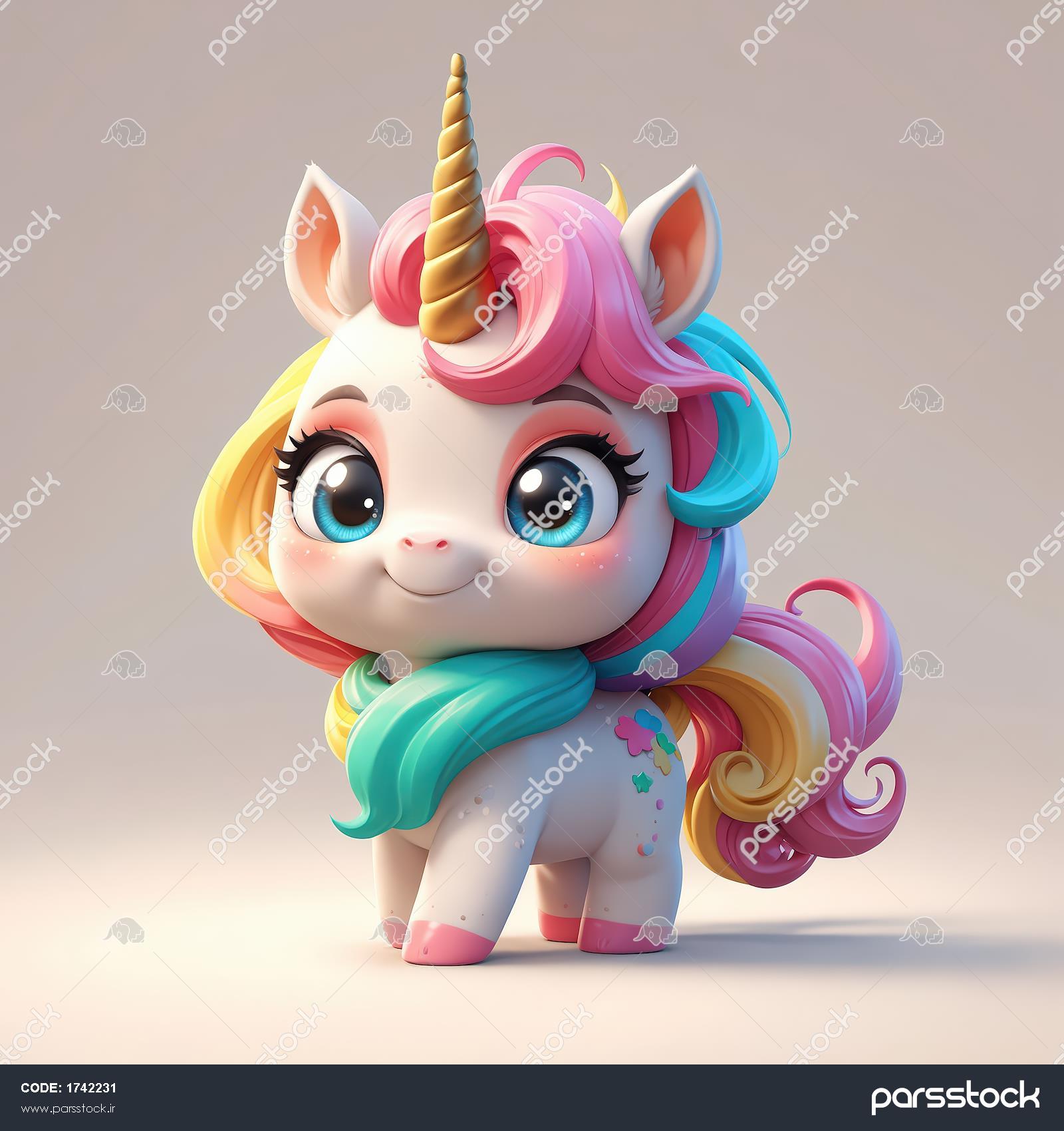 تک‌شاخ کوچک با شال گردن فیروزه‌ای، عکس سه بعدی بامزه برای دکوراسیون و چاپ روی محصول