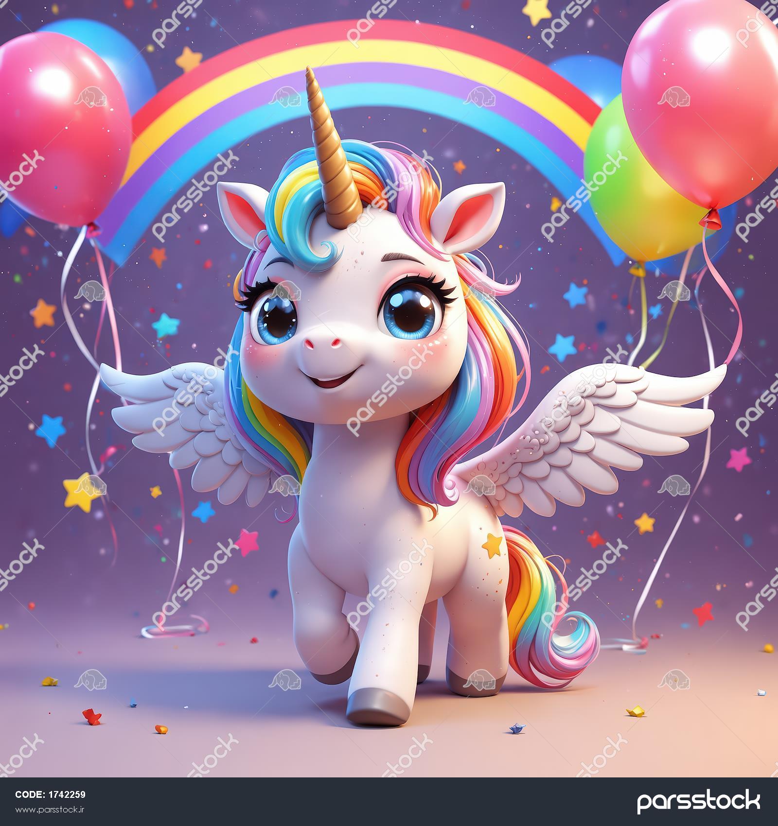 یونیکورن جشنی با یالهای حجیم رنگینکمان و بادکنکهای صورتی و زرد یونیکورن دخترانه با یال صورتی و تاج ستارهای در جشن شادمانی یونیکورن شاد با یالهای ابریشمی رنگینکمانی و بادکنکهای شناور یونیکورن فانتزی در حال دویدن با یال سفید و دُم رنگینکمانی در میان ستارهها یونیکورن جشنی با بادکنک، رنگینکمان و ستاره؛ مناسب تم تولد کودک یونیکورن با یال سفید فرفری در کنار رنگینکمان شیبدار و دُم رنگی یونیکورن ایستاده شاد با چشمان آبی درشت و یال فرفری آبی و زرد یونیکورن عروسکی با یال مواج صورتی و آبی و پرچم رنگینکمان در پسزمینه تصویر دکوراتیو یونیکورن خندان با پسزمینه رنگینکمان و ستارههای رنگی یونیکورن فانتزی با یال و دم رنگینکمانی و شاخ طلایی برجسته نمایش همه