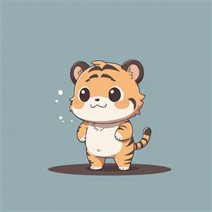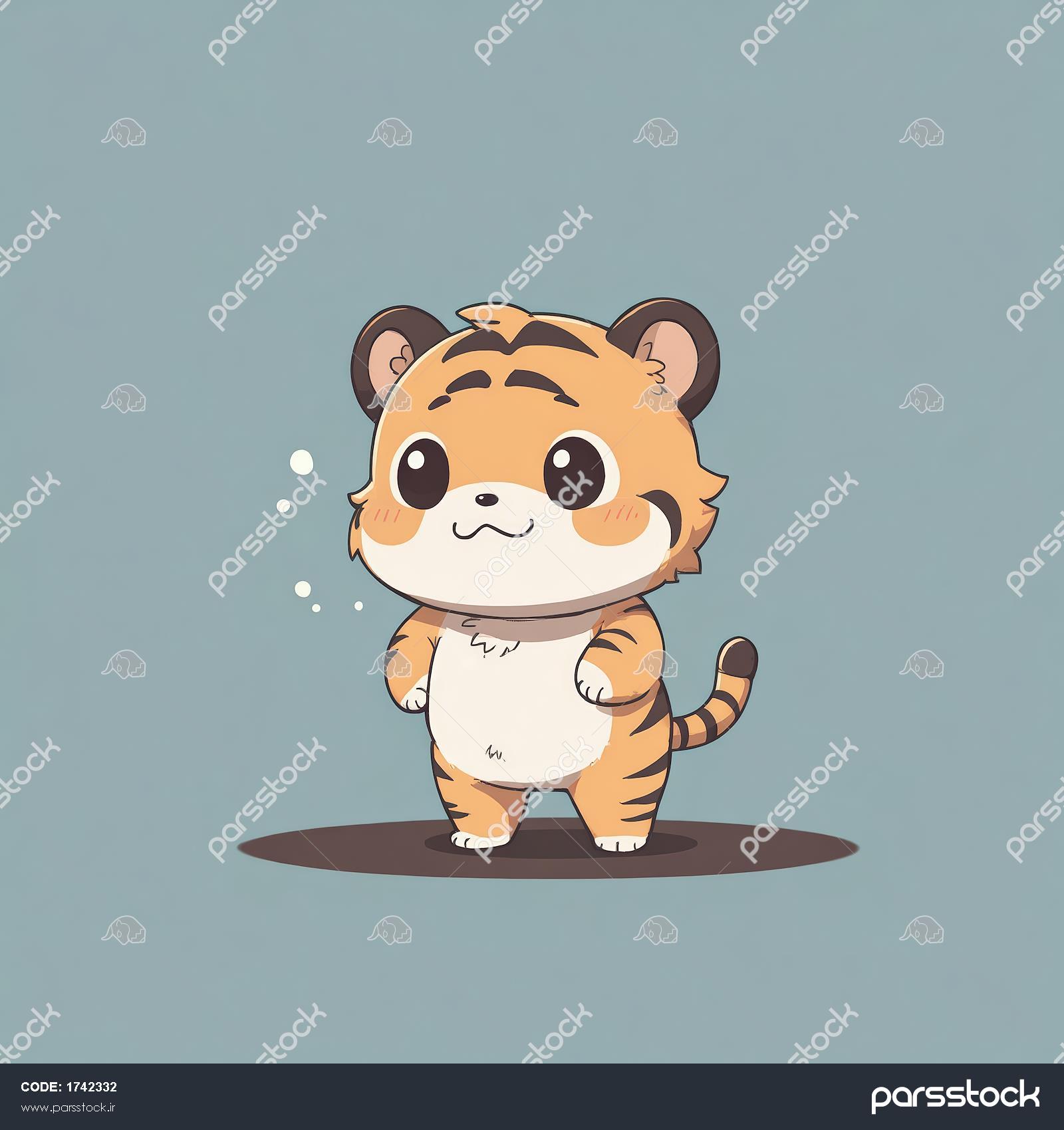 تصویر بچه‌ببر کارتونی با پس‌زمینه آبی ملایم، طرح مینیمال برای چاپ عریض و استیکر دیواری