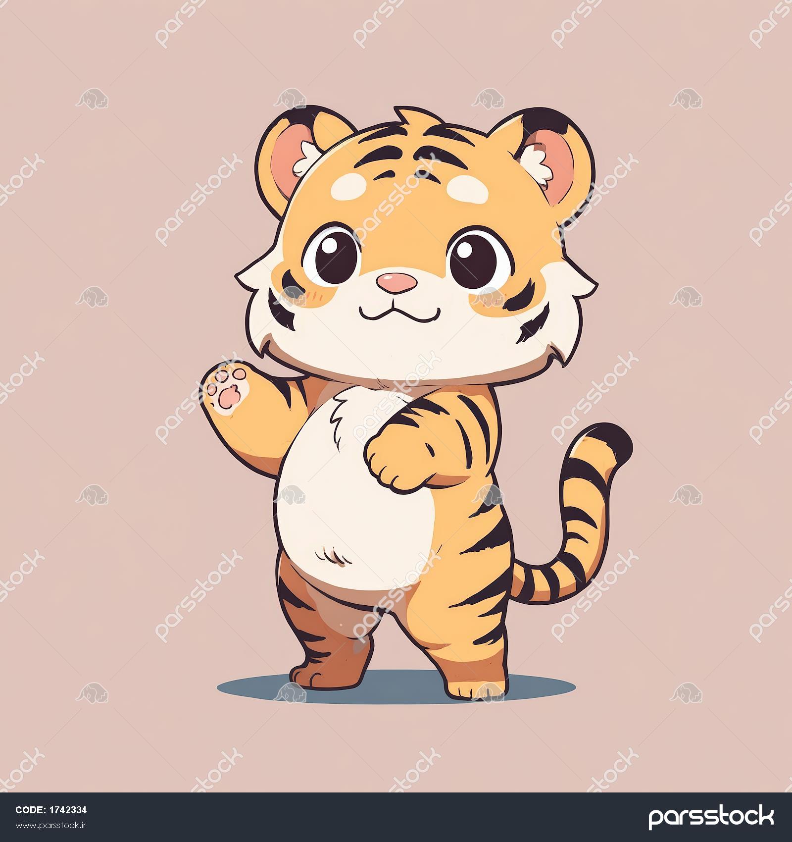 تصویر اورجینال بچه‌ببر کارتونی در حال خداحافظی مناسب چاپ بوم و دکوراسیون اتاق کودک