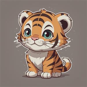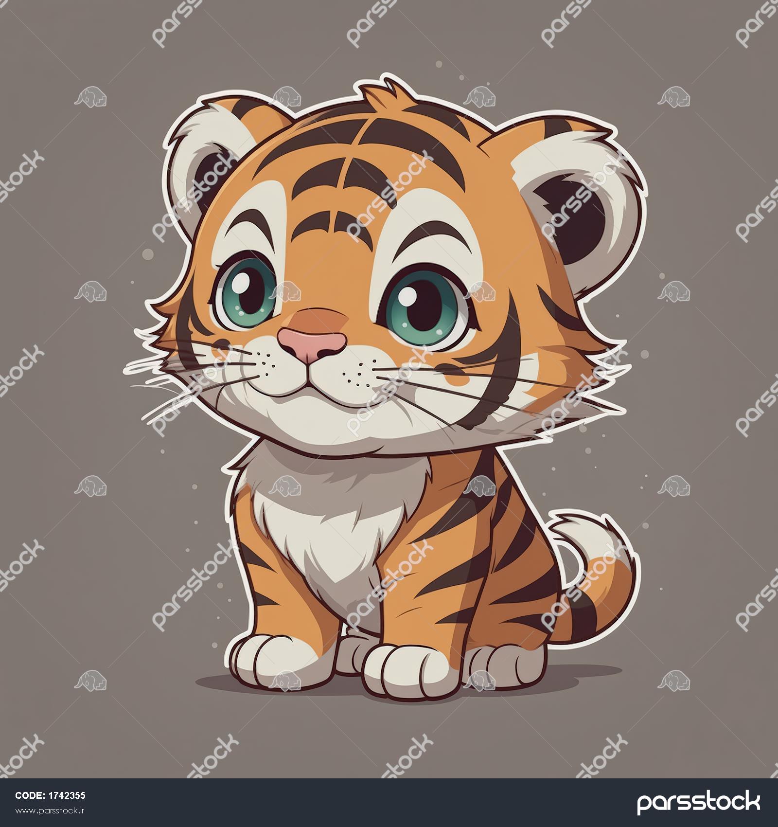 طرح گرافیکی بچه ببر کیوت با چشمان سبز درشت، مناسب چاپ عریض دکوراتیو و استیکر دیواری