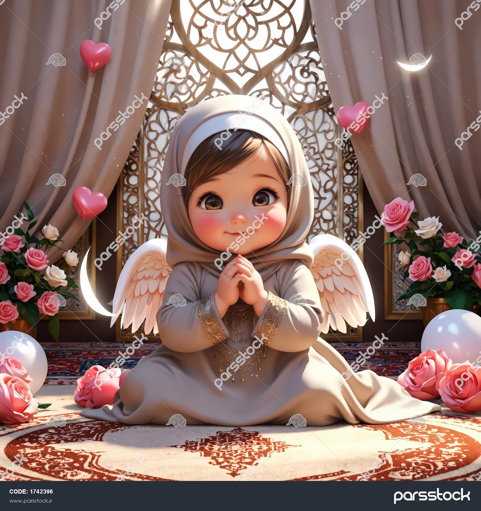 تصویر کودک فرشتهای با حجاب و بالهای سفید، در احاطه گل و بادکنک قلبی و جشن تکلیف فرشته کوچک با حجاب خاکستری، گل رز و پنجرهای در جشن تکلیف تصویر کودک با حجاب و دسته گل در جشن تکلیف با بادکنک و دکور رنگی عکس باکیفیت کودک با حجاب و بال، در دکور جشن تکلیف با رز و ستاره فرشته کوچک با بالهای بزرگ سفید، حجاب صورتی و دکور جشن تکلیف پوستر فرشته محجبه در حال نیایش، طرح جشن تکلیف با دکوراسیون مجلل و گل پوستر دختر محجبه فرشته با حجاب نارنجی و قلب، طرح جشن تکلیف و مذهبی تصویر کودک مسلمان با بال صورتی و هاله نور در جشن تکلیف تصویر باکیفیت کودک با لباس سفید و حجاب صورتی، در جشن تکلیف تصویر استودیویی جشن عقد/تکلیف، دختر عروسکی با حجاب بلند و دسته گل رز نمایش همه