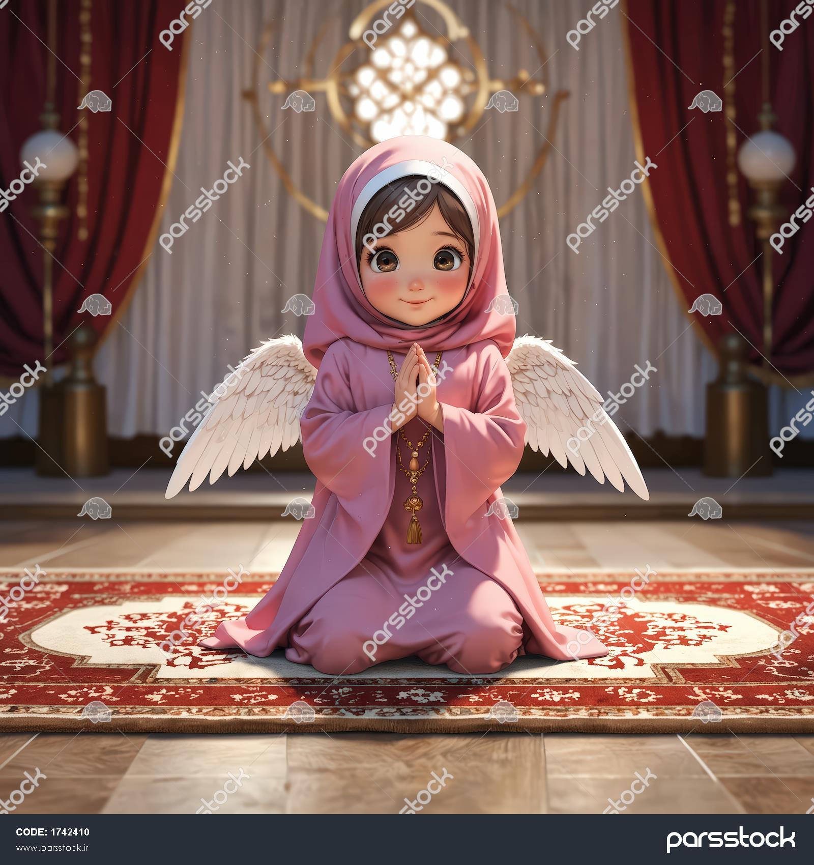 وکتور فرشته دخترانه با حجاب صورتی، لباس سفید و طلایی، در حال دعا با بالهای سفید، طرح چاپ باکیفیت طرح سهبعدی فرشته کودک محجبه با چادر صورتی، زانو زده در حال مناجات (کیفیت بالا برای چاپ دکوراتیو) طرح فرشته محجبه در حال دعا با بالهای صورتی و دکوراسیون سنتی و گل پوستر فرشته محجبه در حال نیایش، طرح جشن تکلیف با دکوراسیون مجلل و گل طرح فرشته محجبه کودک در حال دعا با دکوراسیون مسجد (یا تالار مذهبی) تصویر زیبای فرشته محجبه کودک، در حال نماز یا نیایش، طرح دکوراسیون تصویر مینیاتوری فرشته محجبه در حال دعا، با پسزمینه روشن و هاله نور طرح فرشته محجبه صورتی با گردنبند آویز و دکوراسیون کلاسیک، باکیفیت بالا تصویر اورجینال فرشته محجبه با پس زمینه نورانی، با بالهای کوچک سفید طرح کودک فرشته محجبه صورتی، نشسته روی قالیچه با گلدانهای گل رز نمایش همه