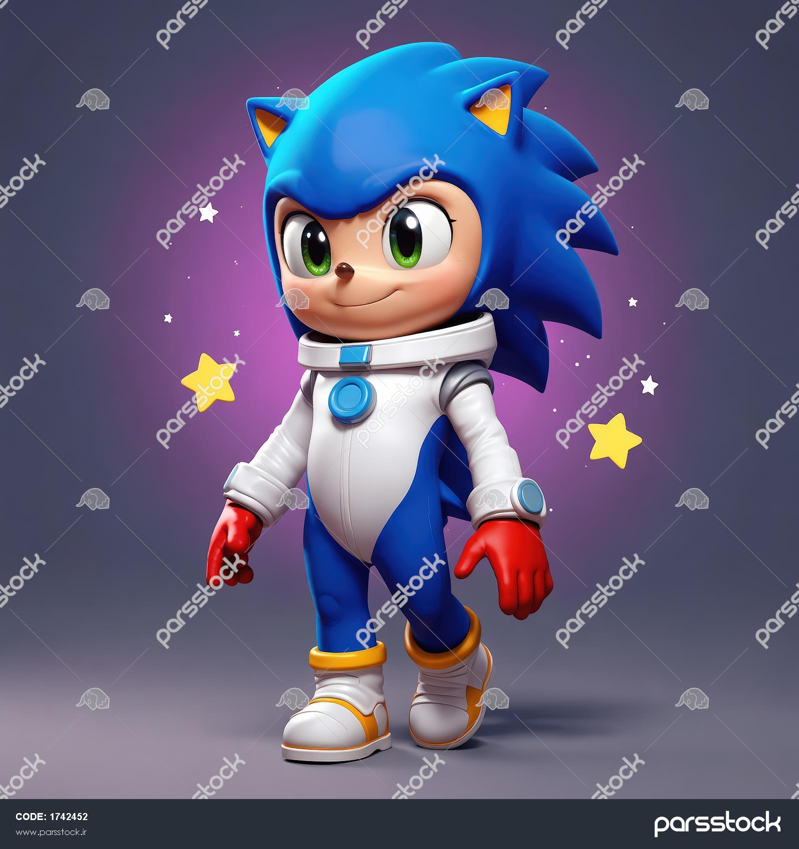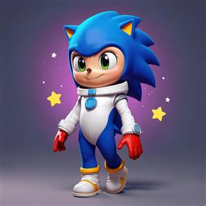 تصویر سونیک با لباس فضایی و ژست راه رفتن با نورهای ستاره‌ای برای پوستر اتاق بازی