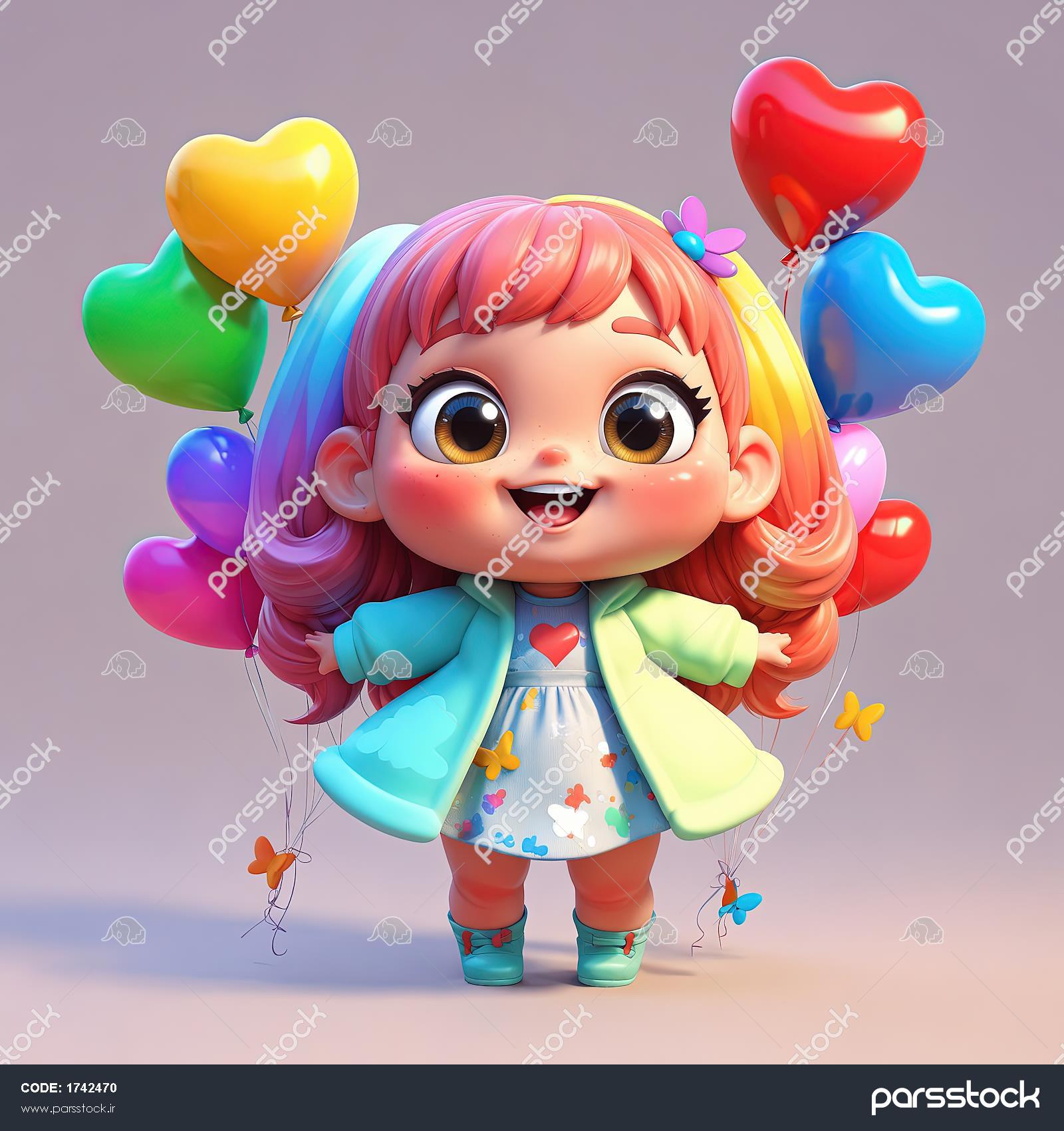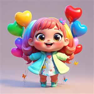 طرح دکوراتیو دختر پری با کلاه رنگین کمانی و بال، در حال نگهداری قلب صورتی