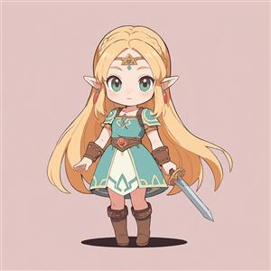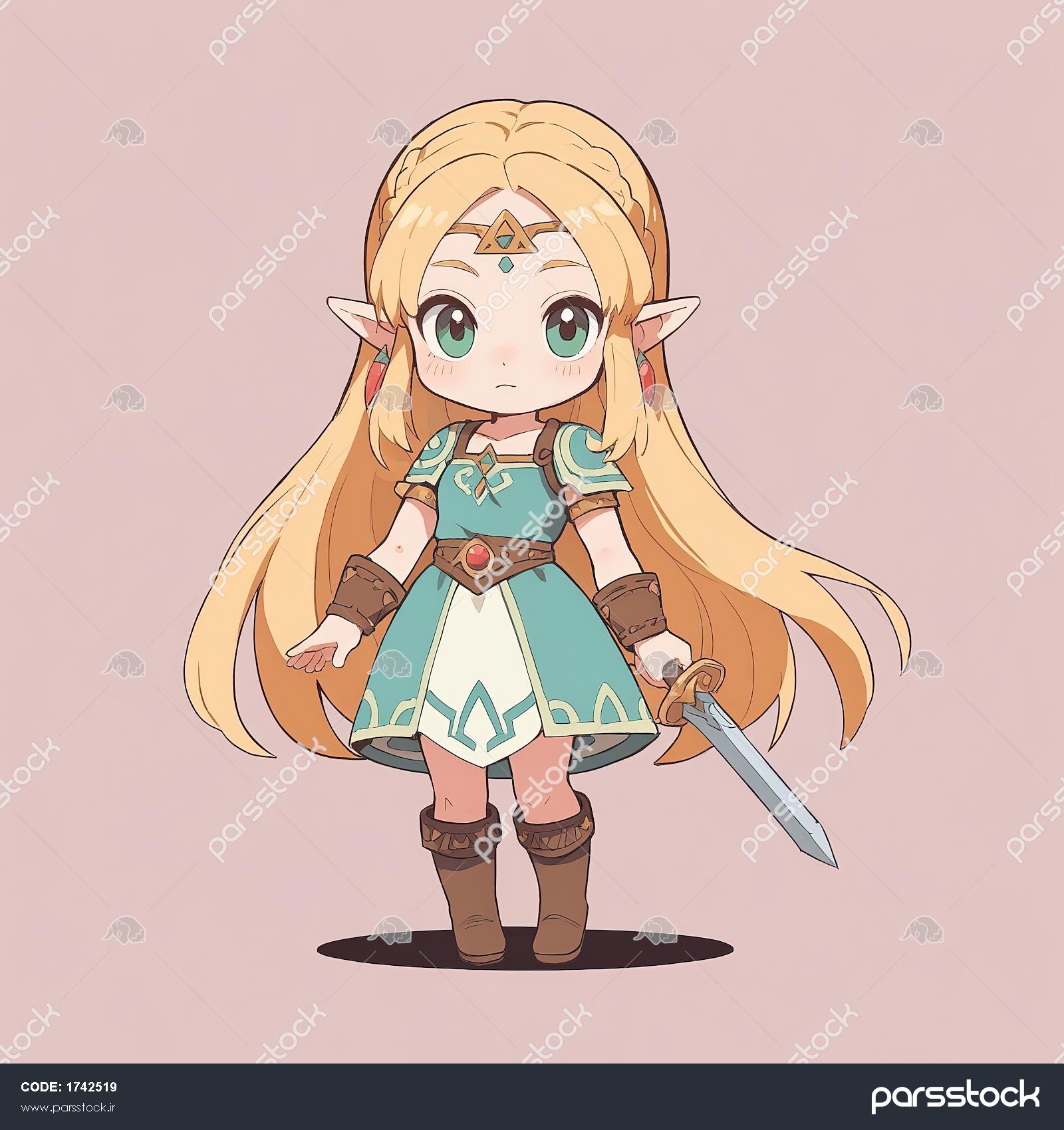 پرنسس زلدا چیبی با شمشیر و موهای بلند بلوند مناسب چاپ طرح فانتزی