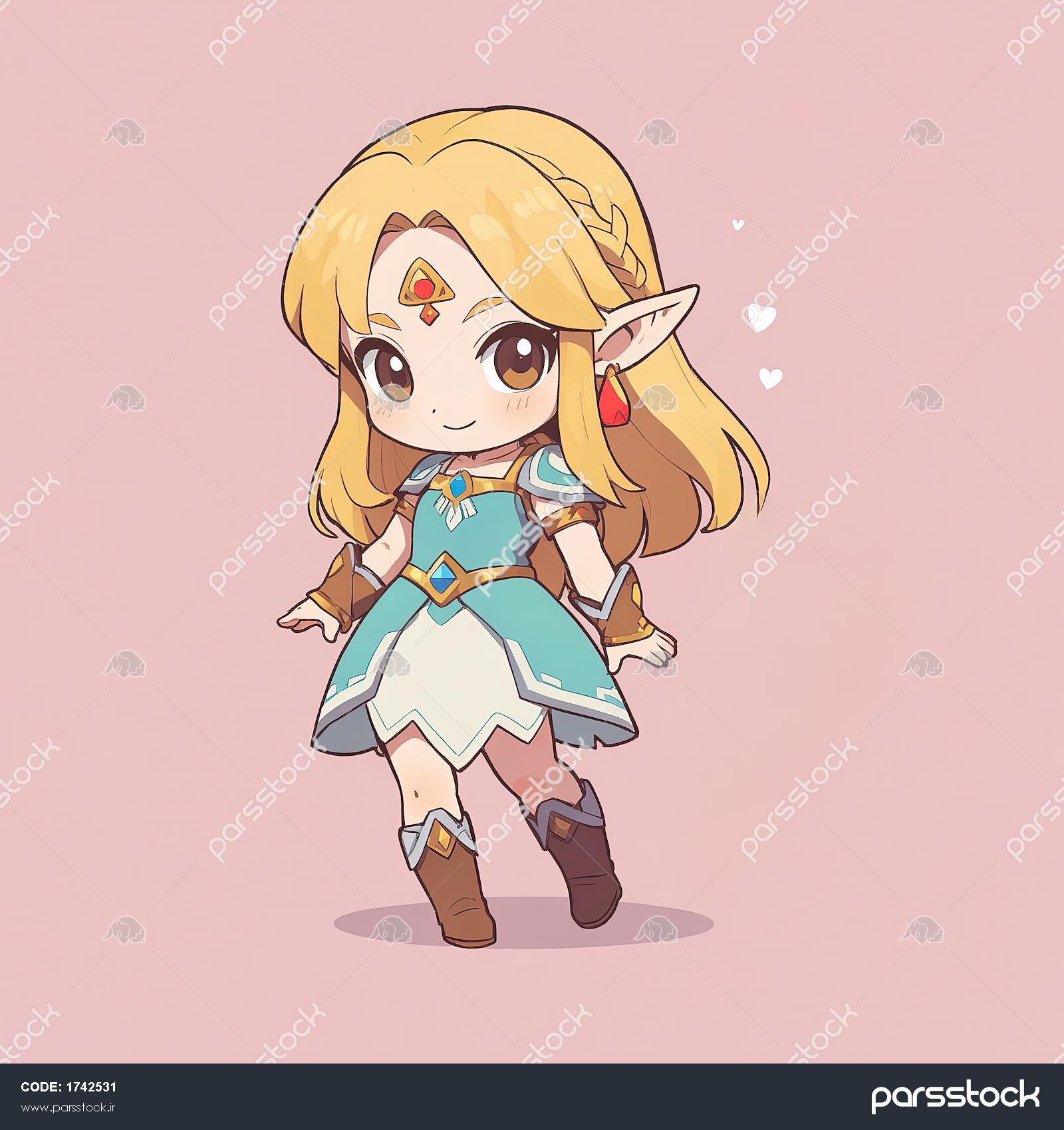 طرح کارتونی پرنسس زلدا چیبی کیوت از بازی افسانه زلدا مناسب چاپ باکیفیت