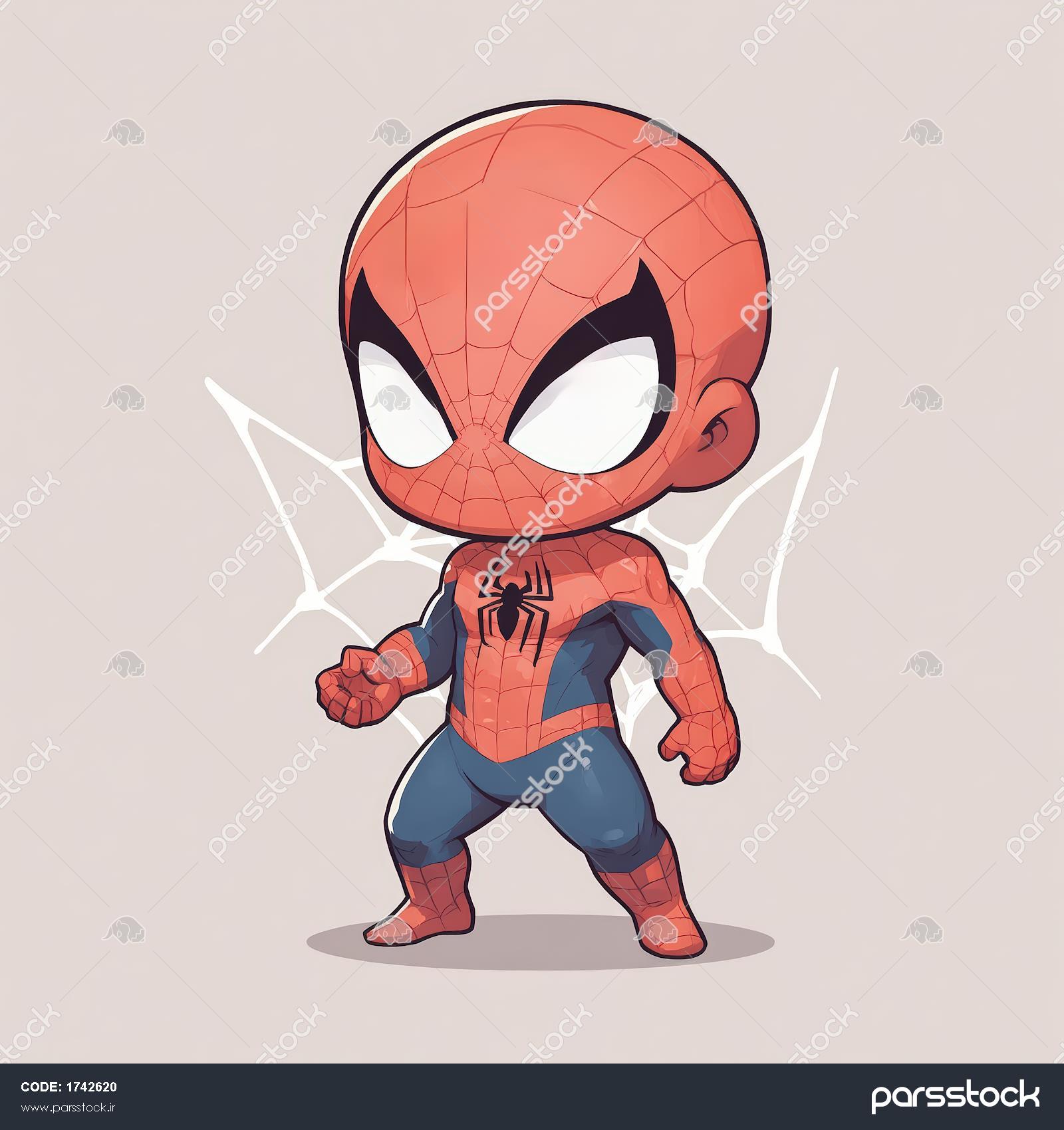 طرح گرافیکی مرد عنکبوتی چیبی با ماسک و ژست حمله