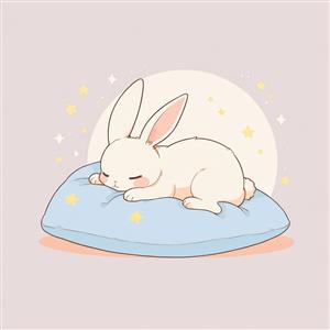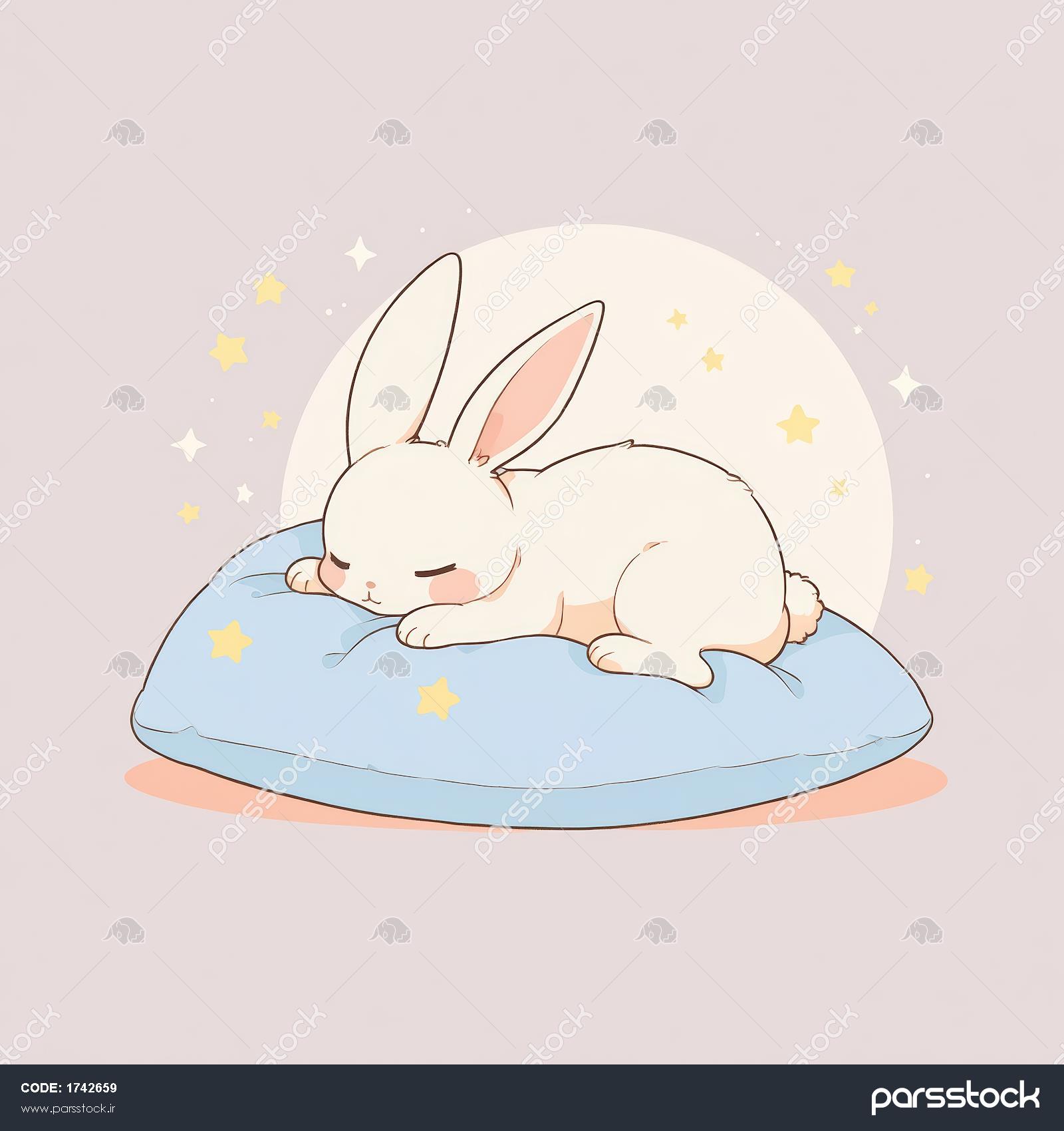 تصویر خرگوش خوابیده روی کوسن آبی، وکتور فانتزی و باکیفیت برای چاپ عریض و تولید محصولات دکوراتیو کودک و مهدکودک