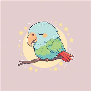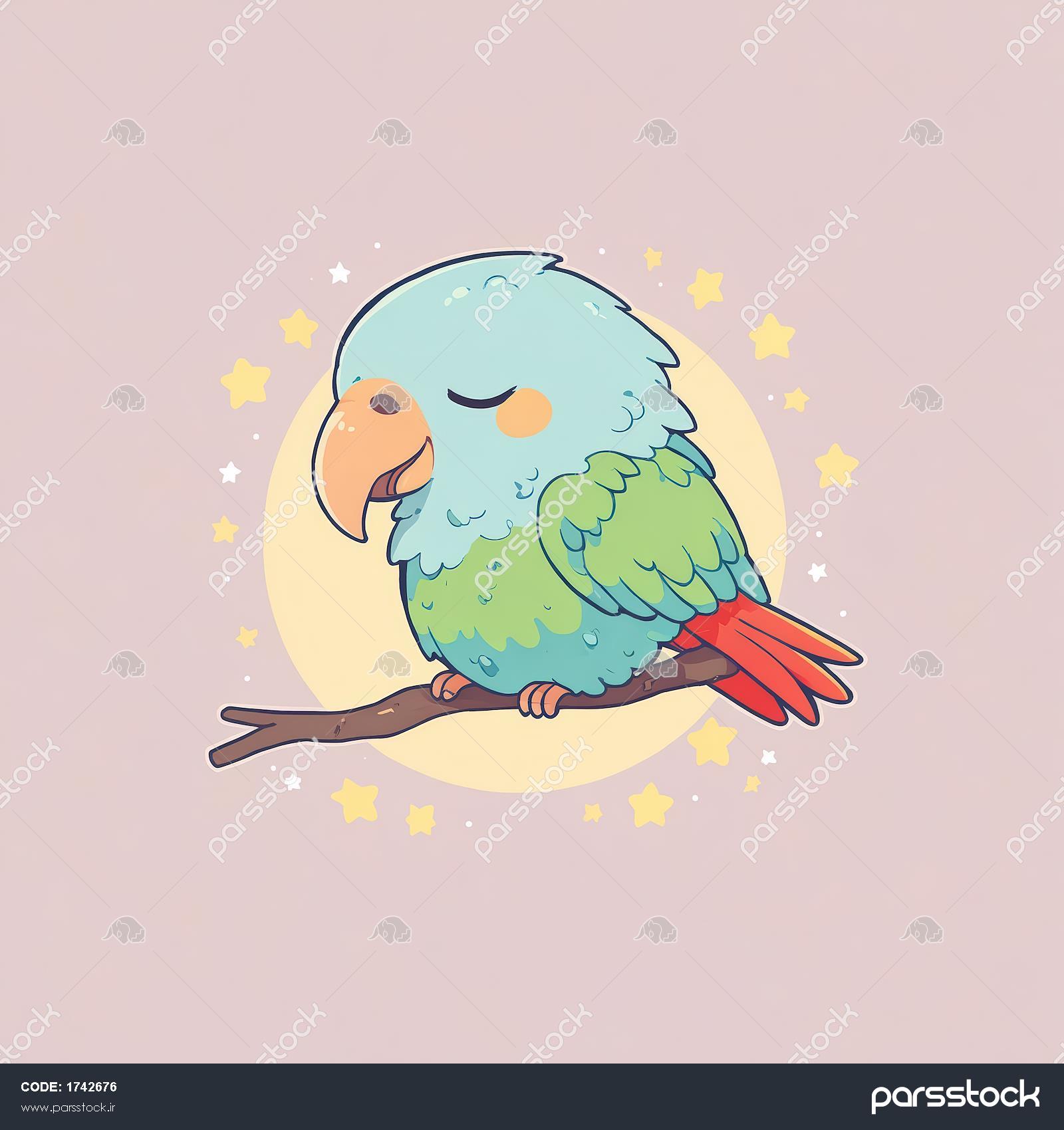 وکتور طوطی آبی و سبز خوابیده روی شاخه با پرهای قرمز