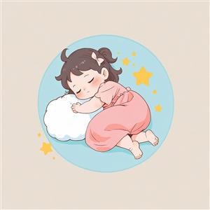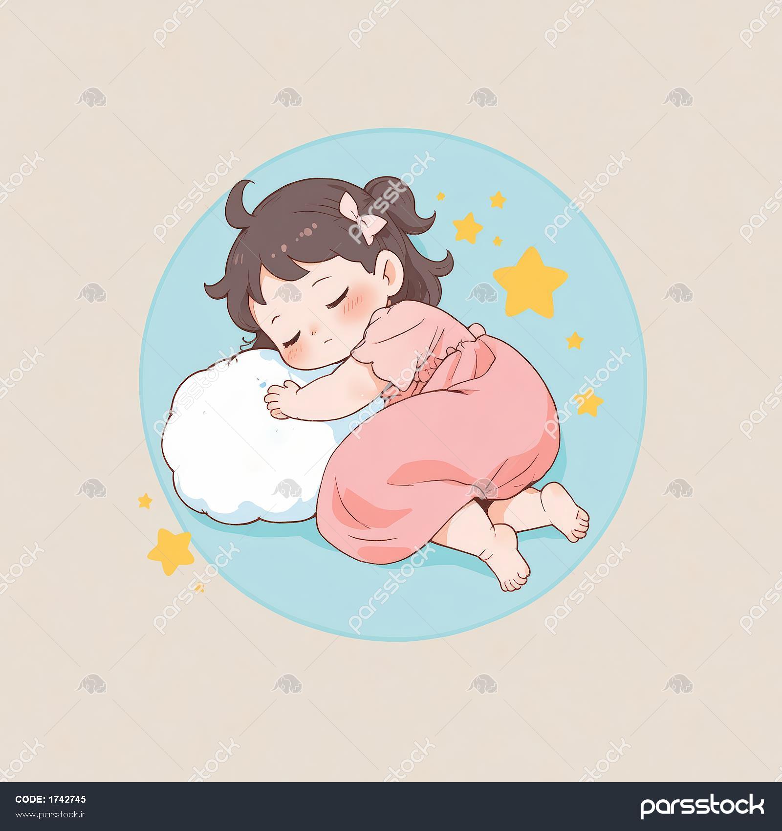 دختر کوچک در لباس صورتی خوابیده روی ابر سفید، طرح آرامش‌بخش و مینیمال