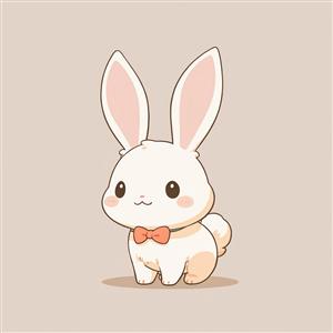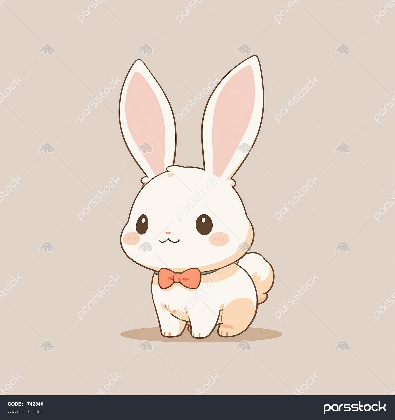 تصویر اورجینال خرگوش با پاپیون کرم/نارنجی در حالت نشسته و پس‌زمینه خاکی
