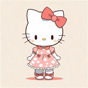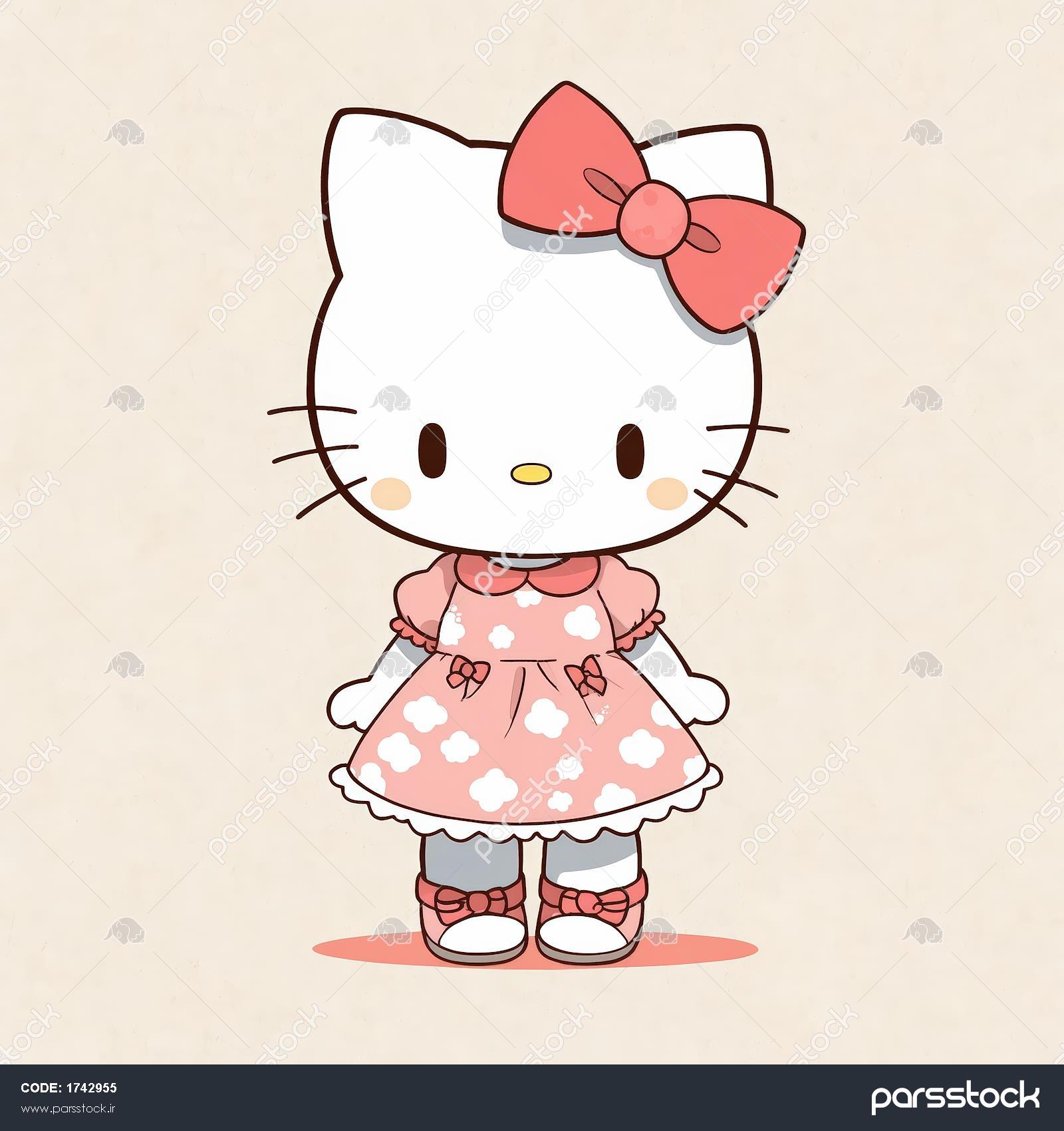 طرح زیبای هلو کیتی با پیراهن صورتی خال‌خالی ابر و پاپیون بزرگ