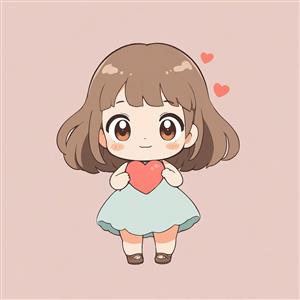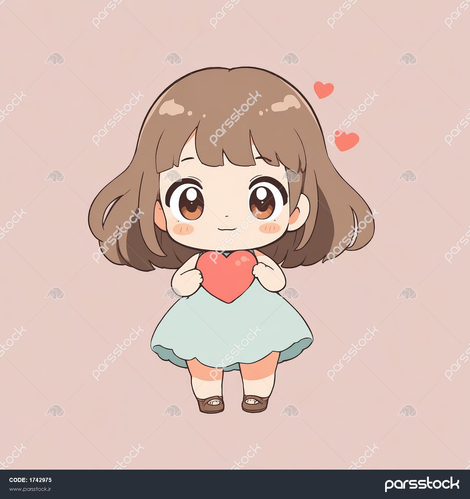 طرح زیبا دخترک انیمه‌ای مو قهوه‌ای با قلب بزرگ در دست (مناسب تابلو)
