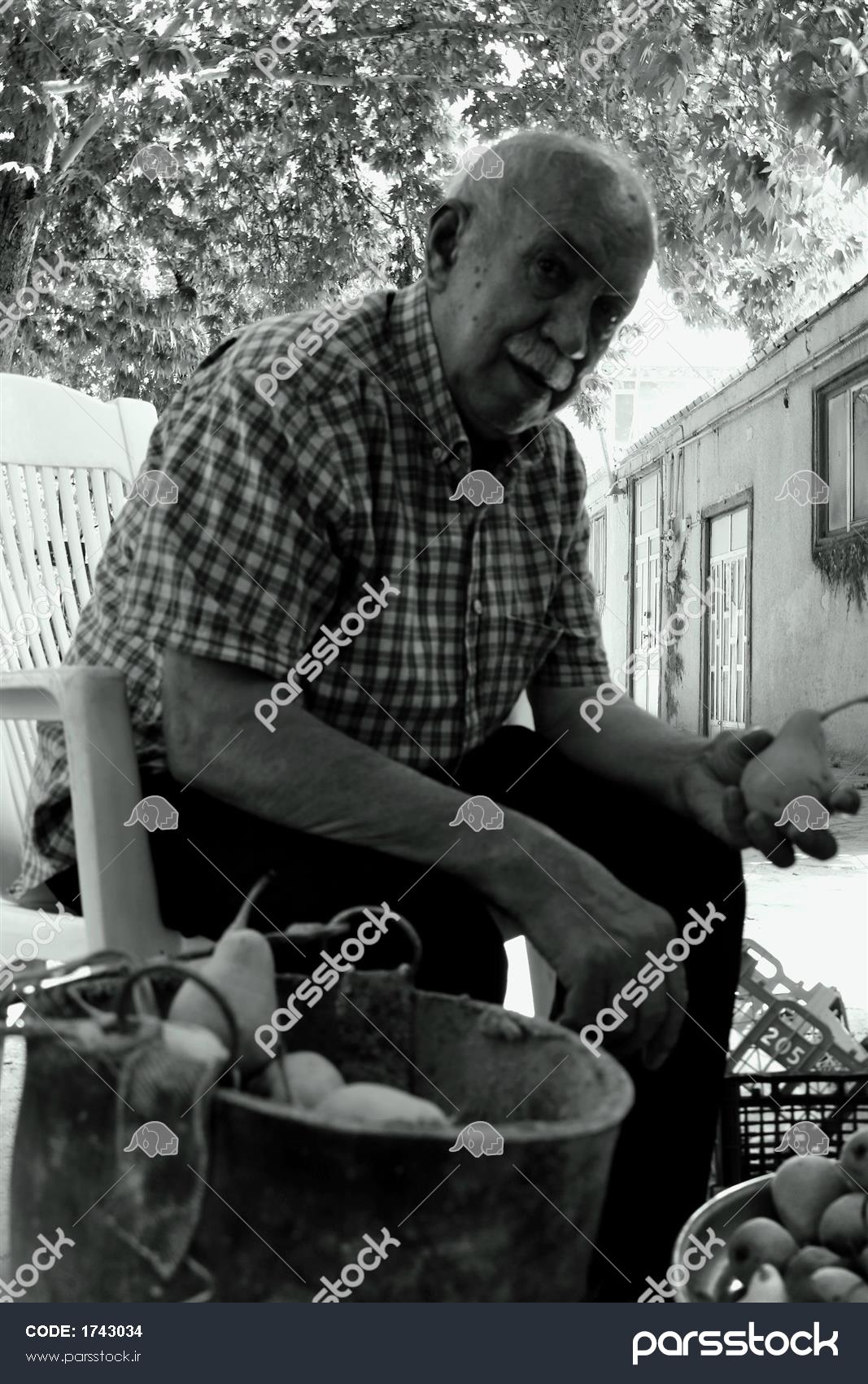 پرتره دو پیرمرد ایرانی با کلاه و ریش در حال استراحت و گپ زدن کنار درب مغازه پرتره سیاه و سفید خانواده شلوغ پنج نفره در حال موتورسواری در خیابان شلوغ شهر نمایش همه