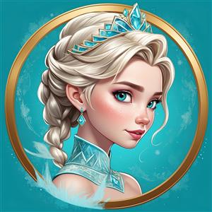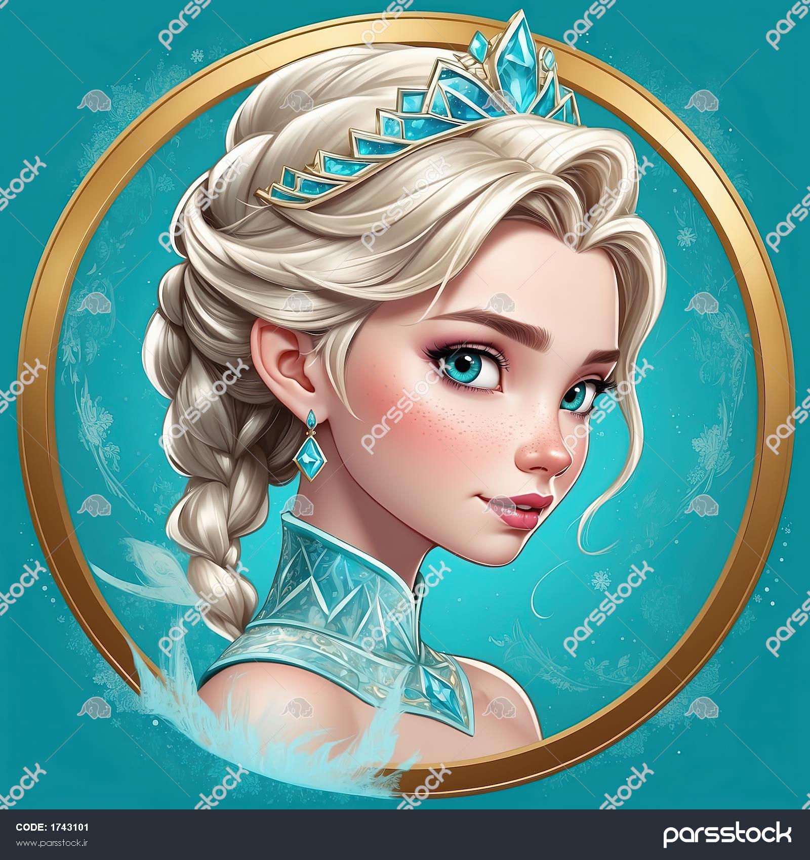 پرتره السا با تاج کریستالی و موی بافته شده، تصویر دایره‌ای باکیفیت برای پوستر فروزن