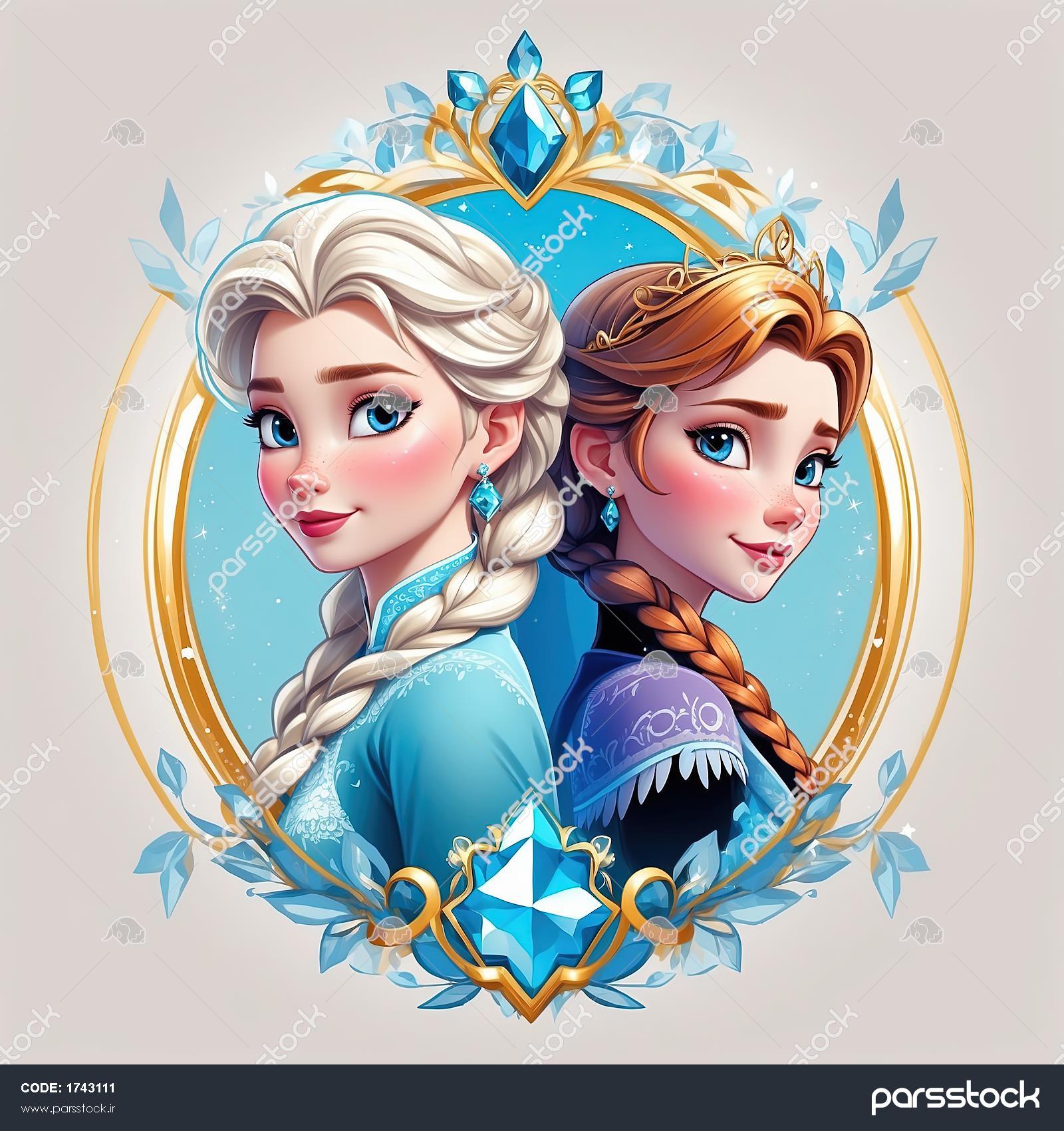 پرتره نیمرخ السا و آنا با تاجهای طلایی و کریستال در قاب مجلل، طرح کلاسیک فروزن برای تابلو تصویر السا و آنا با پسزمینه کوههای کریستالی و قاب دایرهای طلایی، طرح جذاب فروزن برای چاپ تصویر السا و آنا با پسزمینه قلعه آرندل و قاب طلایی نگیندار، طرح خاص انیمیشن فروزن تصویر پشت به پشت السا و آنا در قاب قلبیشکل کریستالی، طرح گرافیکی لوکس فروزن پرتره نیمرخ السا با تاج فیروزهای و قاب طلایی، طرح باکیفیت برای چاپ دکوراتیو فروزن پرتره السا با موهای روان و تزیینات طلایی، طرح دایرهای با پسزمینه روشن برای چاپ پرتره نیمرخ السا در قاب دایرهای طلایی با کریستالهای یخ، طرح لوکس و باکیفیت پرتره آنا با موی جمع و تاج فیروزهای، عکس اورجینال با قاب طلایی برای چاپ تابلو پرتره دایرهای السا و آنا با حاشیه برگ و کریستال یخ، تصویر باکیفیت و اورجینال فروزن پرتره چهره به چهره السا و آنا در قاب سلطنتی، طرح دایرهای با کیفیت بالا برای تابلو فروزن نمایش همه