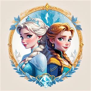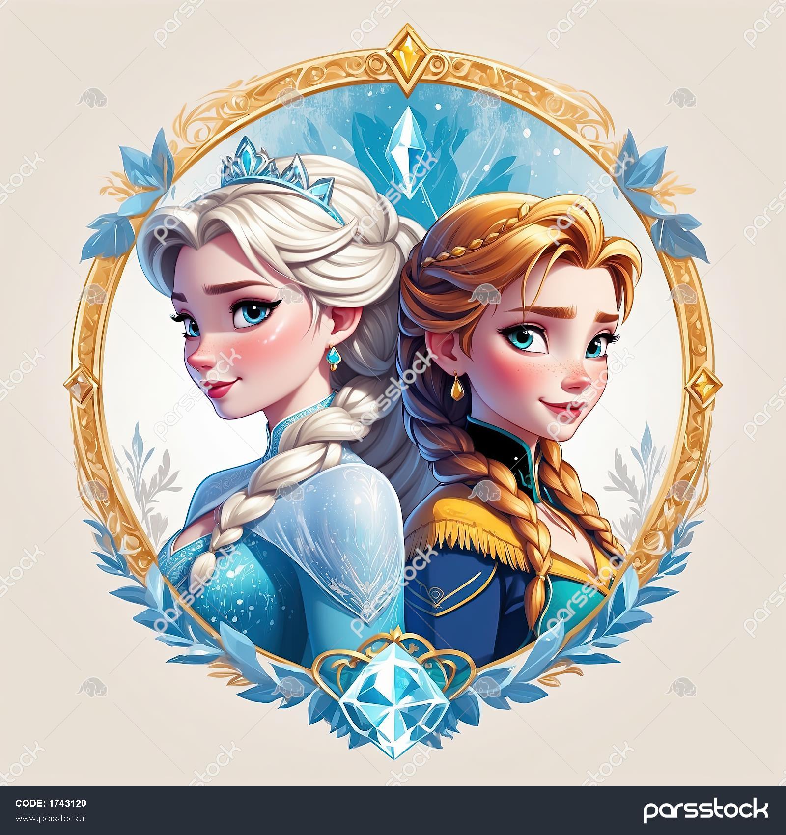 پرتره نیم‌رخ شاهزاده خانم با موی سفید/بلوند و تاج طلایی (طرح خطی رنگی)