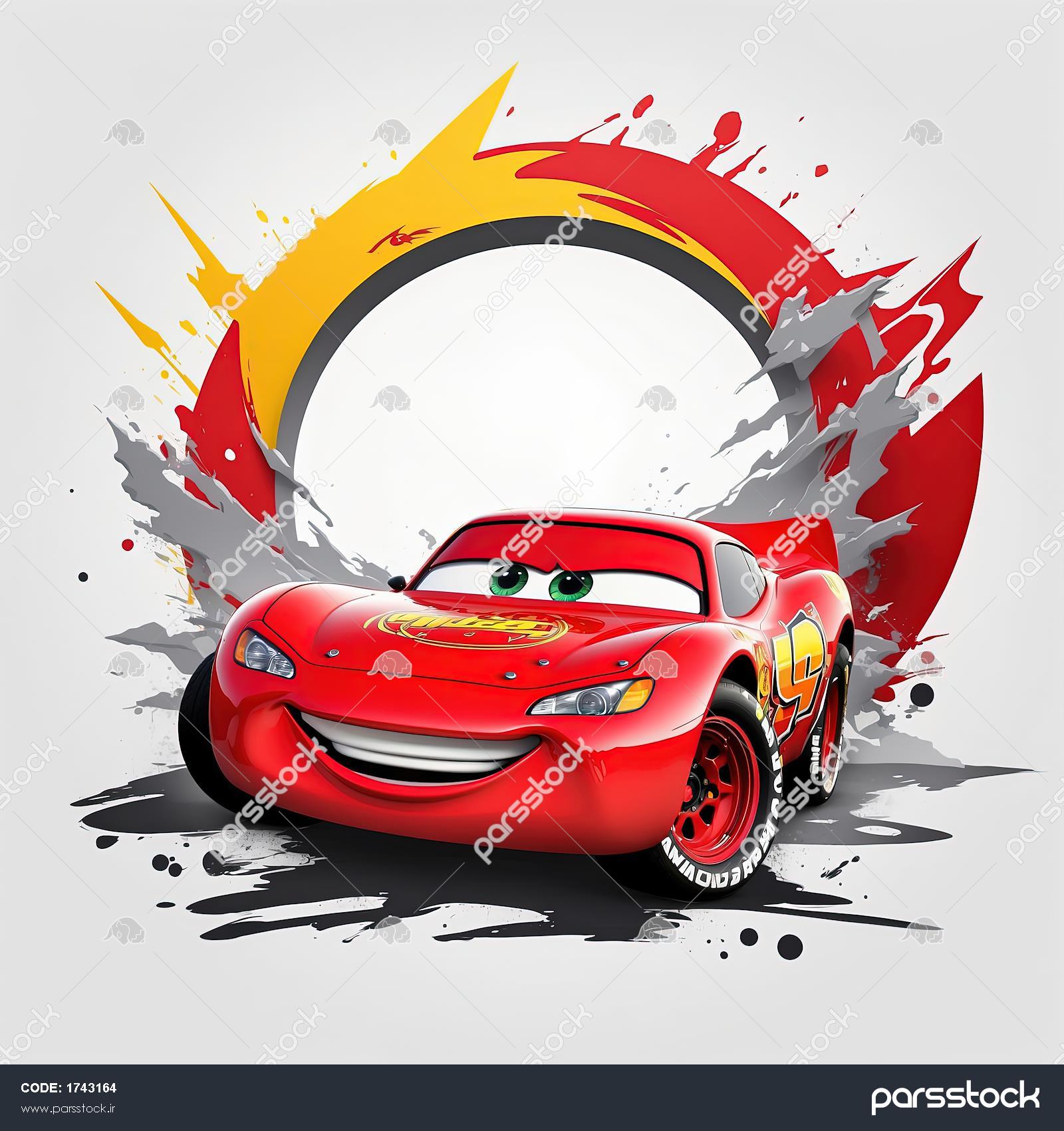 طرح لایتنینگ مک‌کوئین با سیل‌اوت شهر و قاب سرعتی رنگی