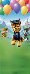 طرح دکوراتیو چیس، راکی و رابل در چمنزار بزرگ با قلعه و بادکنک