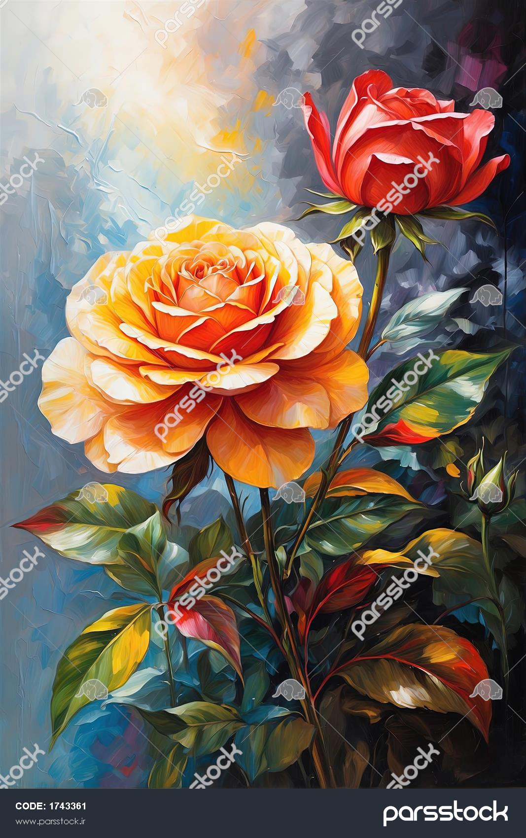 نقاشی رزهای صورتی و زرد با دو پروانه نارنجی و ساقههای بلند پروانه پادشاهی روی رز زرد با پسزمینه نقاشی آبرنگ گوتیک و رمانتیک نقاشی رزهای شاهزاده با پروانههای پادشاهی در طلوع و غروب جوانی با شاخه گل تک برگ از یک مرقع تابلو نقاشی رنگ روغن گل رز زرد و قرمز با پروانه، طرح لوکس دکوراسیون کلوزآپ پروانه پادشاهی با بالهای باز در سبک نقاشی آبرنگ امپرسیونیستی تصویر عمودی رز قرمز با جوانه زرد و پروانه، نقاشی بافتدار تابلو رزهای پرتغالی با دو پروانه مختلف، نقاشی با کنتراست رنگی بالا گل و مرغ تقاشی ایرانی مینیاتور زیبا اثر رحیم عظیمی نقاشی رنگارنگ گل رز قرمز و زرد با پروانه، طرح پرطرفدار دکوراسیون نمایش همه