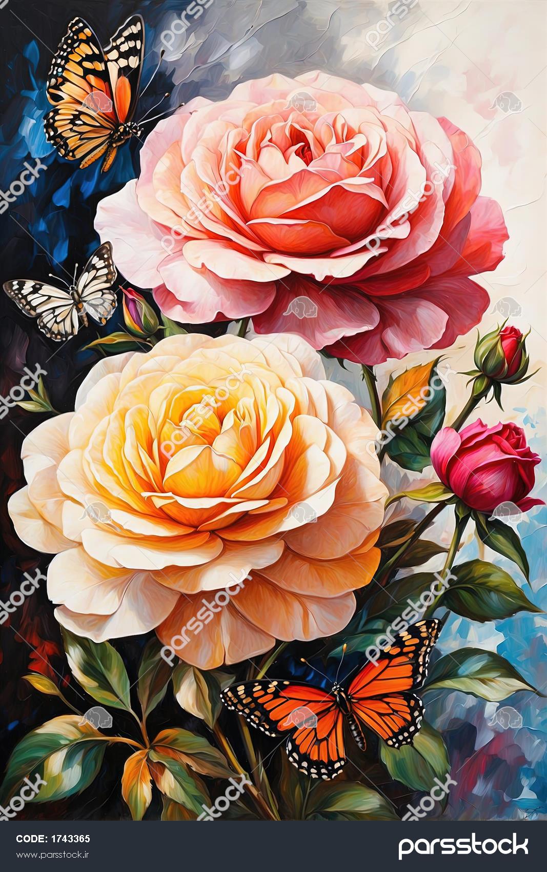 نقاشی رنگارنگ گل رز قرمز و زرد با پروانه، طرح پرطرفدار دکوراسیون تابلو رزهای زرد و سرخ با پروانه زیبا، نقاشی مدرن مناسب چاپ نقاشی عمودی رزهای زرد و سرخابی با پروانه روی زمینه رنگی، طرح پوستر تصویر رز نارنجی بزرگ با پروانه و جوانه، نقاشی رنگ روغن پالتدار نقاشی رزهای آبرنگی با ترکیب رنگهای زرد، قرمز و نارنجی، طرح چاپ عریض نقاشی سهبعدی گل رز نارنجی بزرگ و جوانه قرمز، مناسب برای چاپ روی بوم تصویر عمودی رز قرمز با جوانه زرد و پروانه، نقاشی بافتدار نقاشی پروانه پادشاهی با جزئیات بالا و بالهای نارنجی در پسزمینه انتزاعی کلوزآپ پروانه پادشاهی با بالهای باز در سبک نقاشی آبرنگ امپرسیونیستی تابلو نقاشی رنگ روغن گل رز زرد و قرمز با پروانه، طرح لوکس دکوراسیون نمایش همه