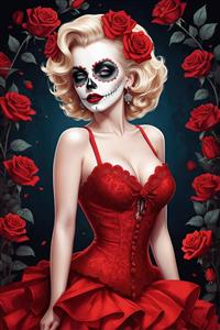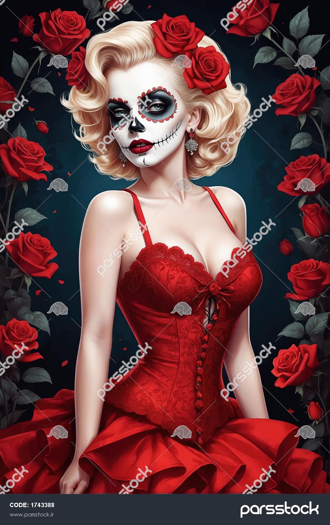 مرلین مونرو کاترینا جذاب با لباس توری سیاه، چوکر و گردنبند تاتوی استخوانی مرلین مونرو طلایی با لباس فاخر و حاشیه رزهای قرمز مخملی و برگهای تیره پرتره مرلین مونرو اسکلتی با تاتوی جمجمهها، لباس توری قرمز و رزهای فانتزی مرلین مونرو اسکلتی کامل در لباس قرمز باز با قفسه سینه استخوانی و جمجمه مرلین مونرو گوتیک در لباس شب قرمز با رزها و جمجمههای شناور در تاریکی مرلین مونرو اسکلتی (کاترینا) با لباس قرمز و زمینه رزهای تیره پرتره مرلین مونرو با موهای نقرهای، لباس قرمز روستیک و تاتوی استخوانی مرلین مونرو خونآشام با آرایش و لباس سیاه و رزهای تیره در پسزمینه قرمز مرلین مونرو شیک با آرایش اسکلتی، گردنبند رز و لباس شب قرمز مرلین مونرو ترسناک شیک با آرایش اسکلتی، دندههای تاتویی و لباس توری سیاه مشاهده همه