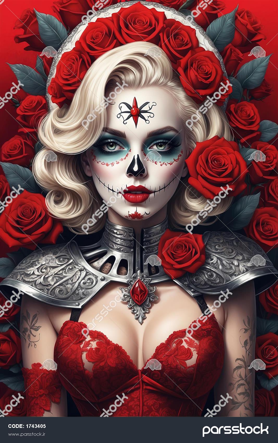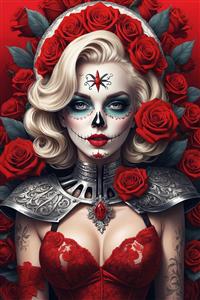طرح مرلین مونرو در هیبت ملکه کتینا با شمشیر و تاج جمجمه طرح تمامقد مونرو با لباس قرمز، شمشیر و اسکلت در پسزمینه کلیسا طرح جنگجوی مرلین مونرو با زره اسکلتی و تاج گل رز سرخ پرتره هنری مرلین مونرو با آرایش فانتزی و گلهای رز قرمز مونرو در قاب آینهای ماه با تم گوتیک و آرایش روز مردگان پرتره مونرو با خالکوبی اسکلت، لباس قرمز و تاج رزهای سرخ تصویر اورجینال مرلین مونرو اسکلتی با زره، شمشیر و گلهای سرخ پرتره مرلین مونرو در نقش کتینا با تاج، زیورآلات و رزهای سرخ پوستر مرلین مونرو با آرایش اسکلتی، لباس قرمز و پسزمینه وینتیج پرتره مونرو با خالکوبی اسکلت و رز، لباس بندی قرمز برای چاپ نمایش همه
