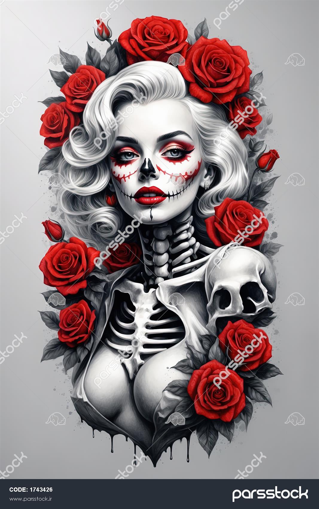مونرو در قاب آینهای ماه با تم گوتیک و آرایش روز مردگان پرتره مونرو با خالکوبی اسکلت و رز، لباس بندی قرمز برای چاپ طرح مونرو با خالکوبی رز، آرایش اسکلتی و پسزمینه تیره عکس باکیفیت مونرو با آرایش کتینا و طرح قلبهای عاشقانه پرتره مرلین مونرو در نقش کتینا با تاج، زیورآلات و رزهای سرخ طرح مرلین مونرو با لباس شب قرمز و آرایش اسکلتی ظریف طرح مونرو با زره جنگی و آرایش کتینا احاطه شده با رزهای سرخ پرتره مرلین مونرو کاترینا با چوکر توری سیاه، آرایش کوکی و رزهای تیره پرتره مرلین مونرو اسکلتی با تاتوی جمجمهها، لباس توری قرمز و رزهای فانتزی مرلین مونرو ترسناک شیک با آرایش اسکلتی، دندههای تاتویی و لباس توری سیاه نمایش همه