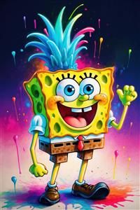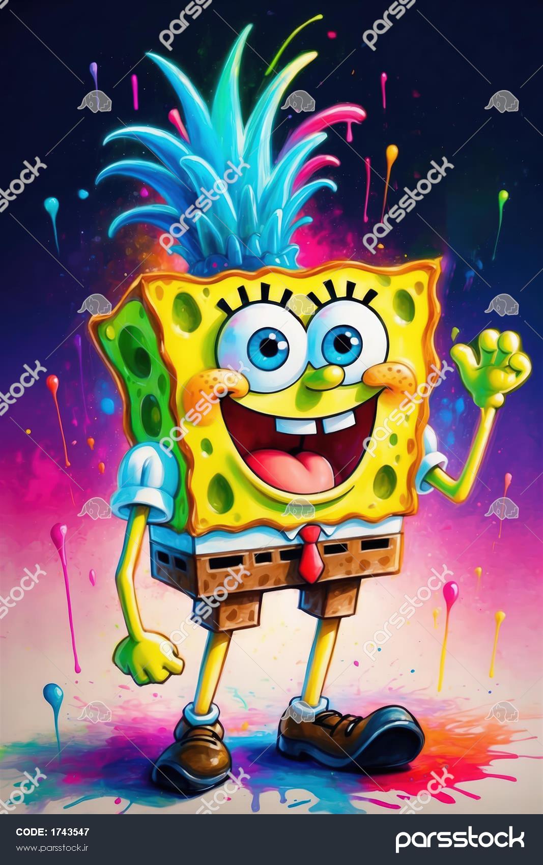 باب‌اسفنجی با تاج آناناسی رنگی و افکت پاشش رنگ روی پس‌زمینه تیره