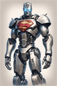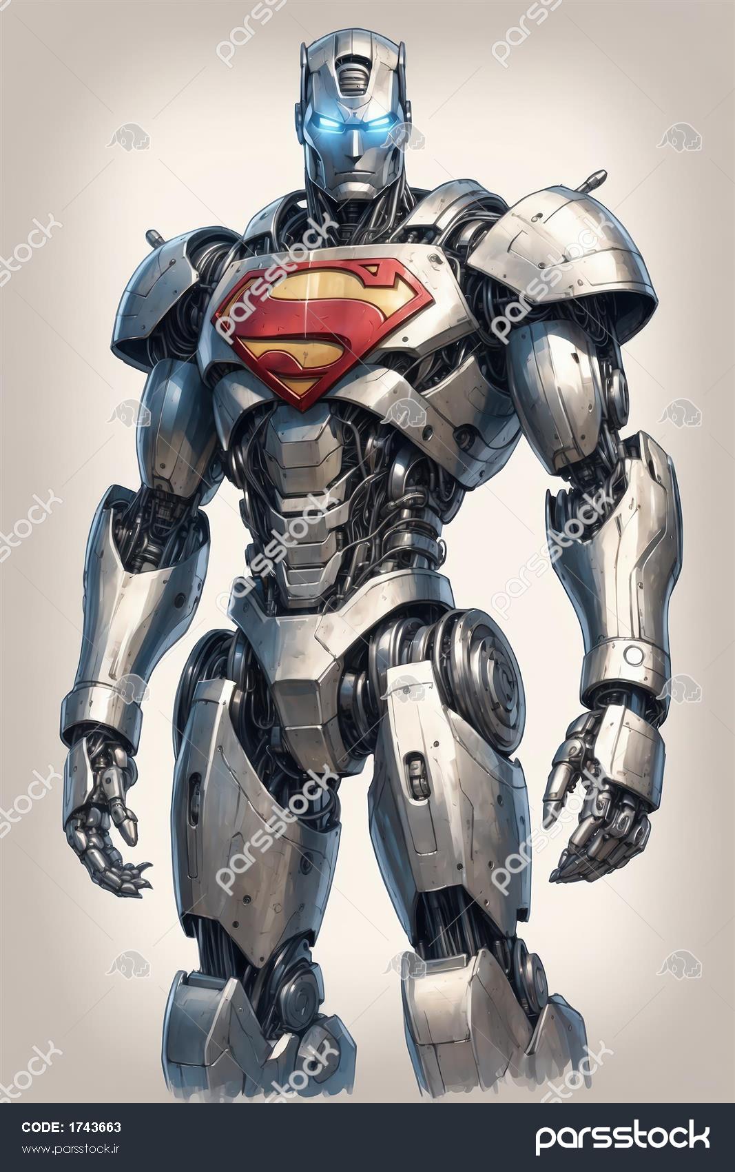طرح کامل سوپرمن رباتیک (بدون شنل) با زره فولادی و لوگوی رنگی