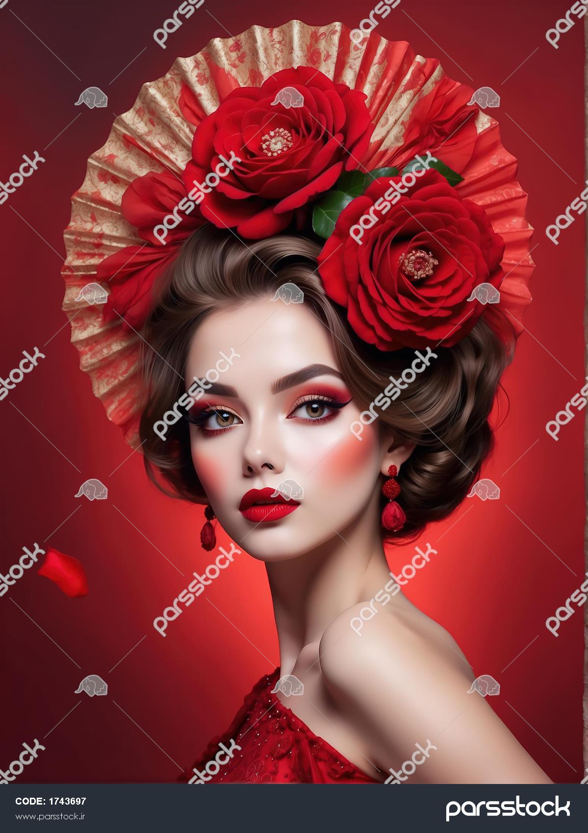 طرح گرافیکی زن با کلاه بادبزنی و گل رز بزرگ و گوشوارههای آویز برای دکوراتیو پوستر پرتره زن مدل با کلاه حصیری و دو گل رز قرمز بزرگ برای تابلو دکوراتیو پوستر پرتره زن جذاب با دو گل رز قرمز و گوشواره برای گالری و چاپ عریض پوستر پرتره زن با آرایش قرمز، بادبزن و گل رز حجیم برای دکوراسیون داخلی تابلو دکوراتیو پرتره زن با عمامه ابریشمی قرمز و گل رز بزرگ برای دکوراسیون عکس باکیفیت زن با گل رز قرمز و بادبزن برای چاپ تابلو دکوراتیو لوکس طرح گرافیکی زن با بادبزن بزرگ و گل رز حجیم برای چاپ روی بوم و تابلو تصویر اورجینال زن با آرایش قرمز، گل رز و یقه ایستاده برای پوستر مد و فشن عکس باکیفیت زن با دو گل رز قرمز روی سر و بادبزن برای چاپ دکوراتیو لوکس طرح گرافیکی پرتره زن با عینک قرمز، گل رز و لباس گیپور برای دکوراسیون شیک نمایش همه