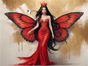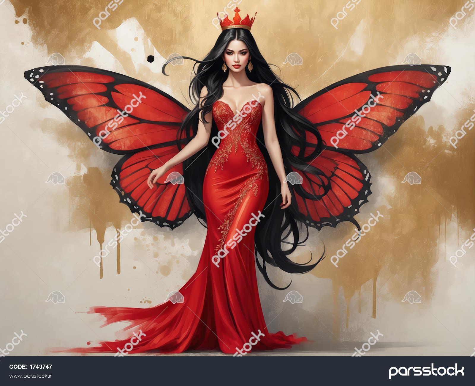 پرتره تمام قد ملکه پریان با لباس دنبالهدار قرمز، مناسب دکوراسیون مدرن تصویر با رزولوشن بالا از پری پروانه با لباس مجلسی تنگ، مناسب چاپ نفیس پری بالدار با لباس طلایی و قرمز و تاج، تصویر دکوراتیو با کنتراست رنگی بالا پری پروانه با موی مشکی روان و لباس مجلسی قرمز، تصویر باکیفیت برای دکوراسیون پرتره تمام قد ملکه پریان با لباس چاکدار قرمز و طلایی، چاپ با کیفیت عالی ملکه پریان با لباس دکلته قرمز و تزئینات طلایی، عکس باکیفیت برای تابلو ملکه پریان با لباس شب قرمز کار شده با طلا و بالهای پروانه بزرگ تصویر باکیفیت بانوی پروانه با لباس مجلسی قرمز و طلایی، ایده تابلو دکوراتیو تصویر اورجینال پری پروانه با بالهای رنگ روغن و لباس مجلسی شانه افتاده پری با موهای مشکی، بالهای بزرگ پروانه و لباس قرمز مجلسی، مناسب دکور نمایش همه