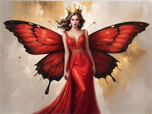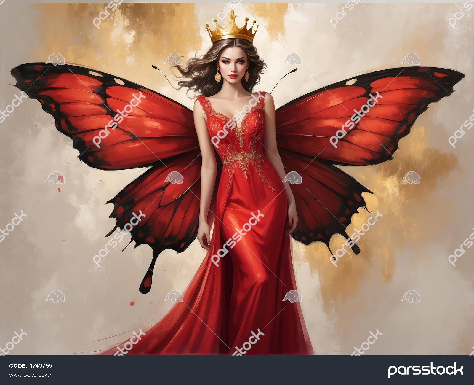 پرتره نیمرخ پری پروانه با دامن کوتاه و تاج، مناسب چاپ تزئینی و دکور شاهزاده خانم پروانه با موهای بلوند و لباس چاکدار قرمز، چاپ عریض تصویر با کیفیت ملکه پریان بالدار با پیراهن قرمز و تاج، ایده چاپ عریض طرح گرافیکی پری سرخپوش با بال پروانه و تاج، مناسب چاپ با رزولوشن بالا پرتره هنری پروانه پری با پیراهن قرمز و تاج، عکس باکیفیت برای پوستر پرتره ملکه پریان با لباس دکلته قرمز و بال پروانه، مناسب چاپ تصویر باکیفیت بانوی پروانه با لباس مجلسی قرمز و طلایی، ایده تابلو دکوراتیو تصویر اورجینال پری پروانه سرخپوش با شنل، مناسب تولید پوستر لاکچری ملکه پریان با لباس شب قرمز کار شده با طلا و بالهای پروانه بزرگ پری پروانه با موی مشکی روان و لباس مجلسی قرمز، تصویر باکیفیت برای دکوراسیون نمایش همه