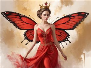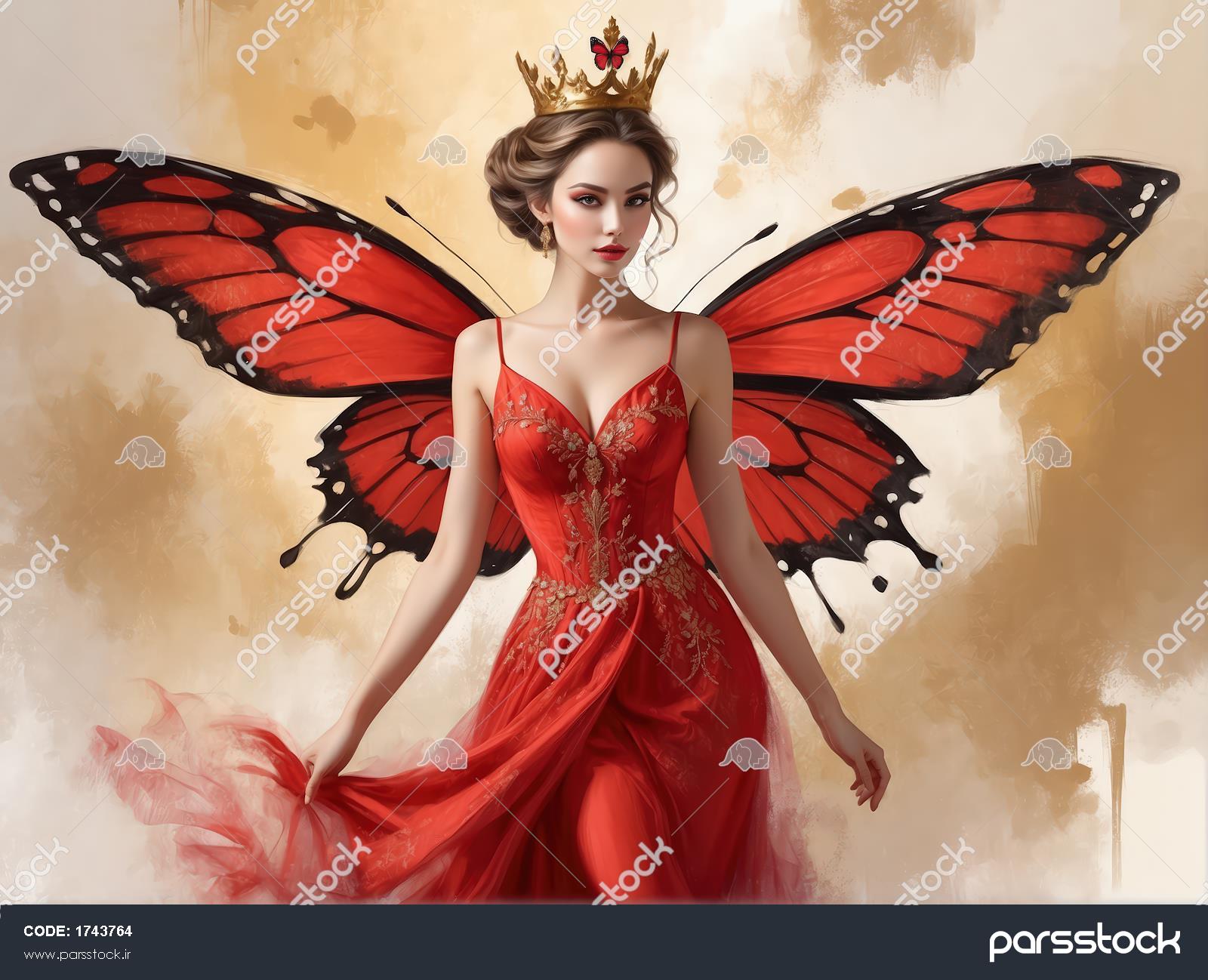تصویر استودیویی ملکه پروانه با موهای مواج و لباس مجلسی شیک، چاپ تصویر اورجینال پری پروانه در لباس شب ساتن قرمز، چاپ عریض با تم لاکچری پری با موهای مشکی، بالهای بزرگ پروانه و لباس قرمز مجلسی، مناسب دکور ملکه پریان با لباس دکلته قرمز و تزئینات طلایی، عکس باکیفیت برای تابلو شاهزاده خانم پروانه با موهای بلوند و لباس چاکدار قرمز، چاپ عریض ملکه پریان با لباس شب قرمز کار شده با طلا و بالهای پروانه بزرگ تصویر خیرهکننده بانوی پروانه با لباس مجلسی قرمز، مناسب دکوراسیون تصویر کامل ملکه پروانه با بالهای بزرگ و لباس سلطنتی قرمز و طلایی تصویر باکیفیت بانوی پروانه با لباس مجلسی قرمز و طلایی، ایده تابلو دکوراتیو پری بالدار با لباس طلایی و قرمز و تاج، تصویر دکوراتیو با کنتراست رنگی بالا نمایش همه