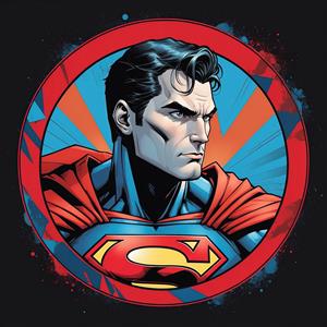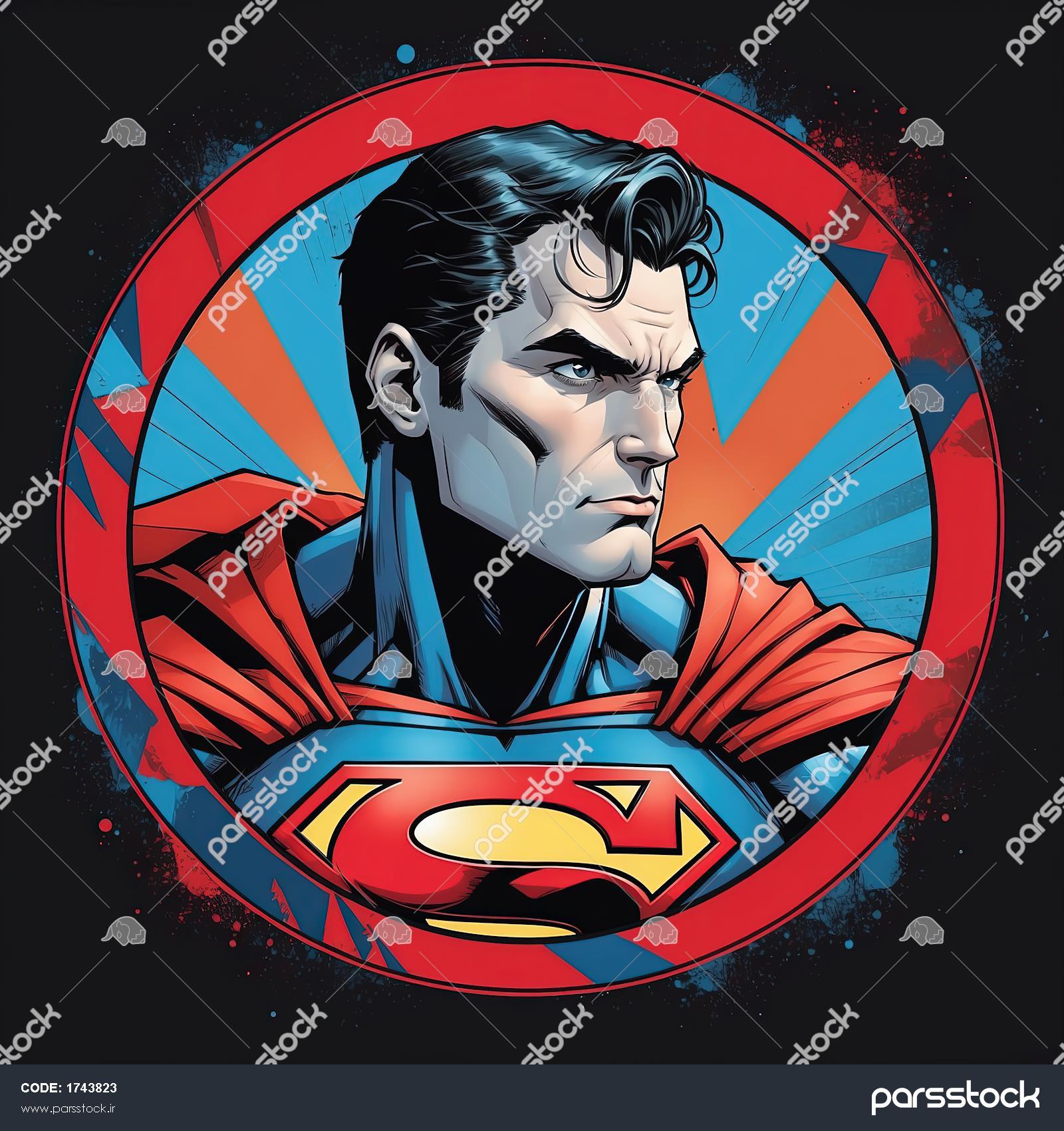 نقاشی کمیک بوکی سوپرمن از نمای نیم رخ با پس زمینه اشعه ای آبی برای تابلو
