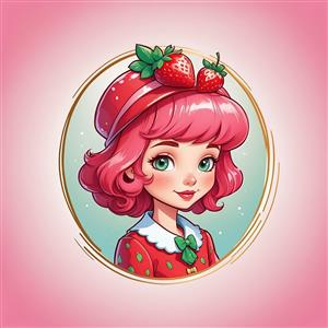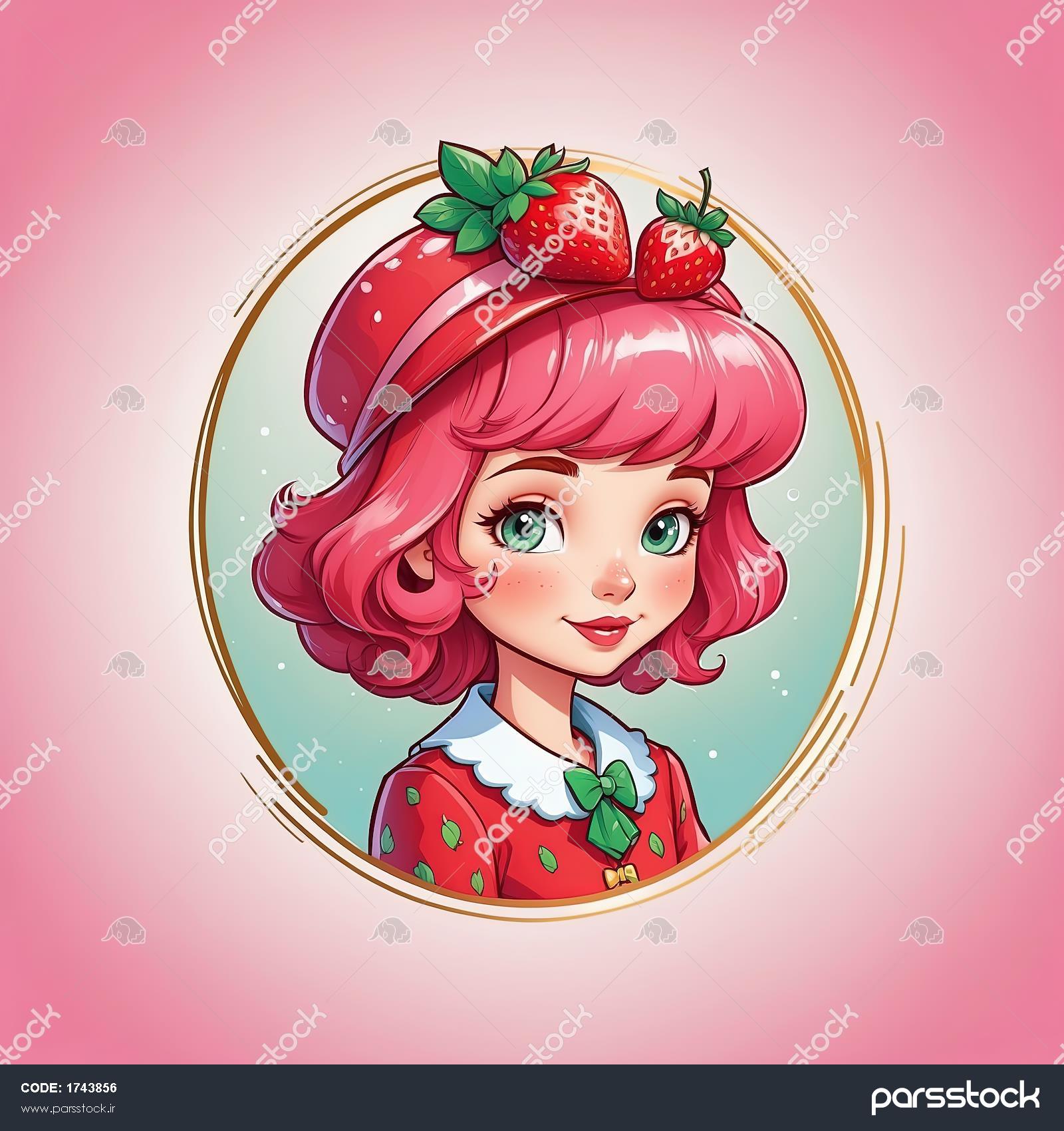 تصویر بسیار با کیفیت دختر توت فرنگی با کلاه قرمز و قاب ظریف طلایی برای والپیپر