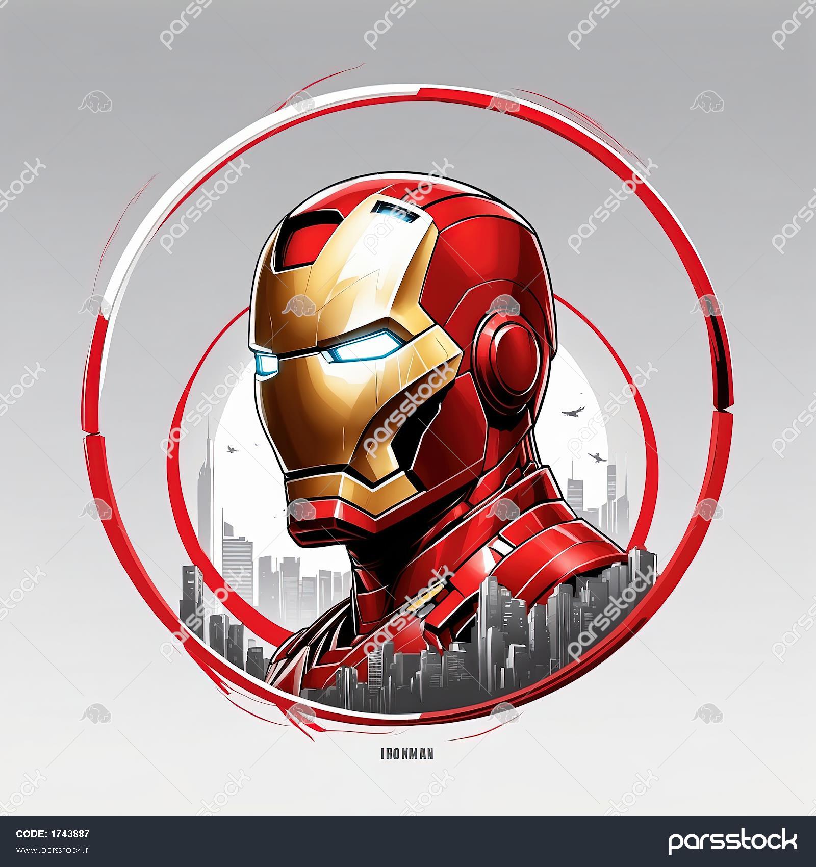 تصویر نیم رخ مرد آهنی با طراحی تمیز و پس زمینه شهر خاکستری مناسب پوستر مینیمال