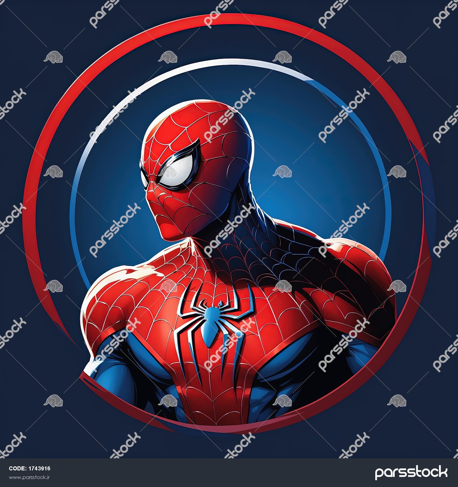 آواتار مرد عنکبوتی با آرم آبی و پس‌زمینه گرادیانت تاریک
