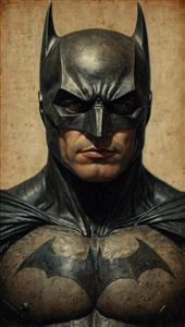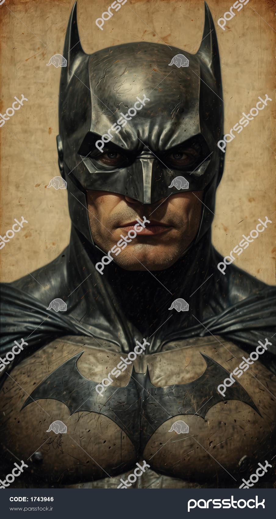 پرتره چهره بتمن با زره قدیمی و زمینه بافت دار تصویر با کیفیت بالا برای چاپ تخصصی