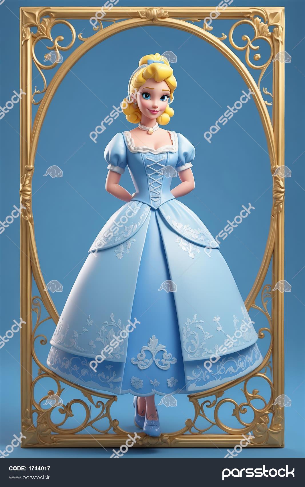 پرنسس آبی در قاب طلایی سلطنتی: تصویر کارتونی کلاسیک و دلنشین