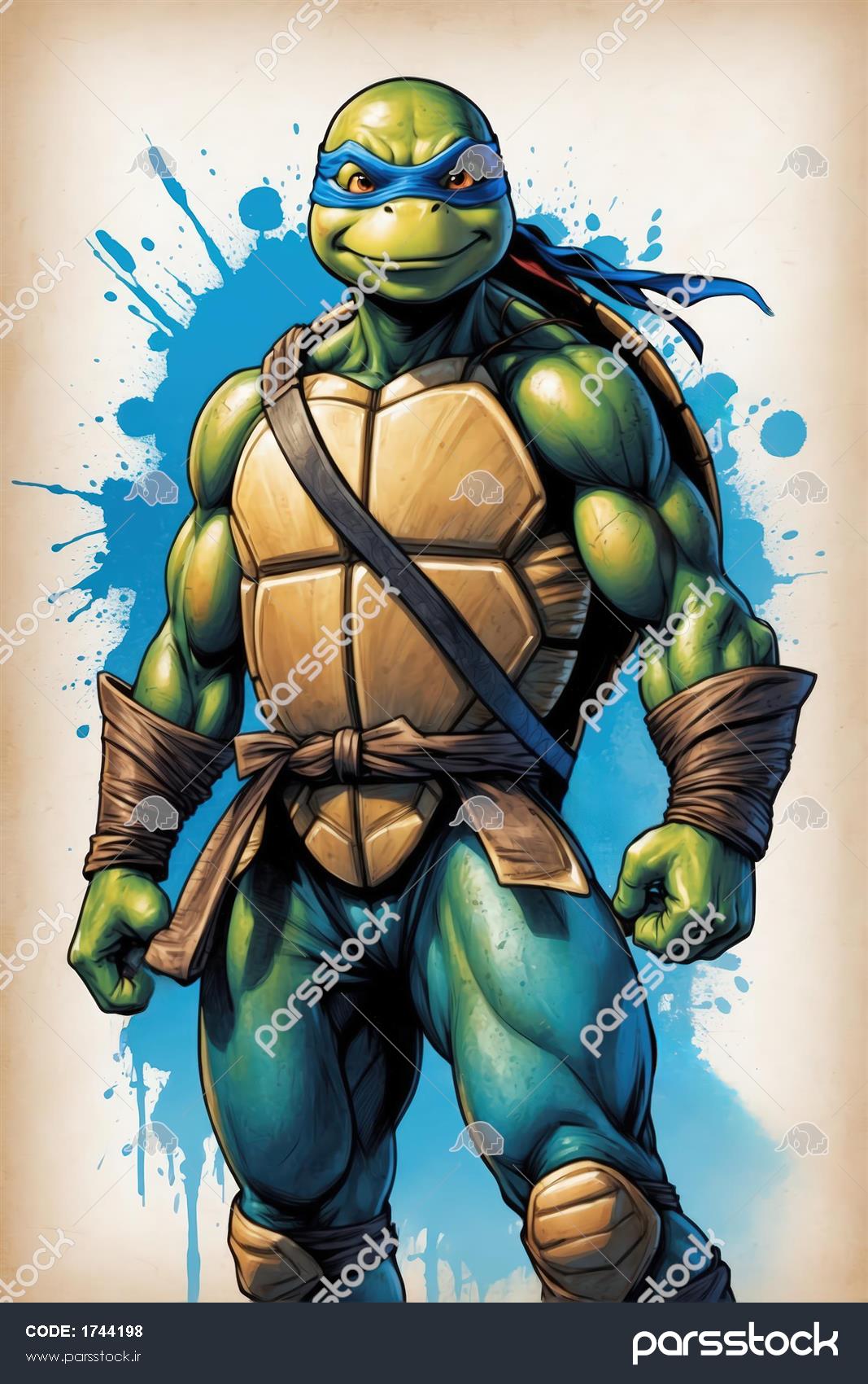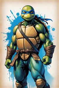 تصویر تمام‌قد لئوناردو لاک‌پشت نینجا با پس‌زمینه اسپلش آبرنگ