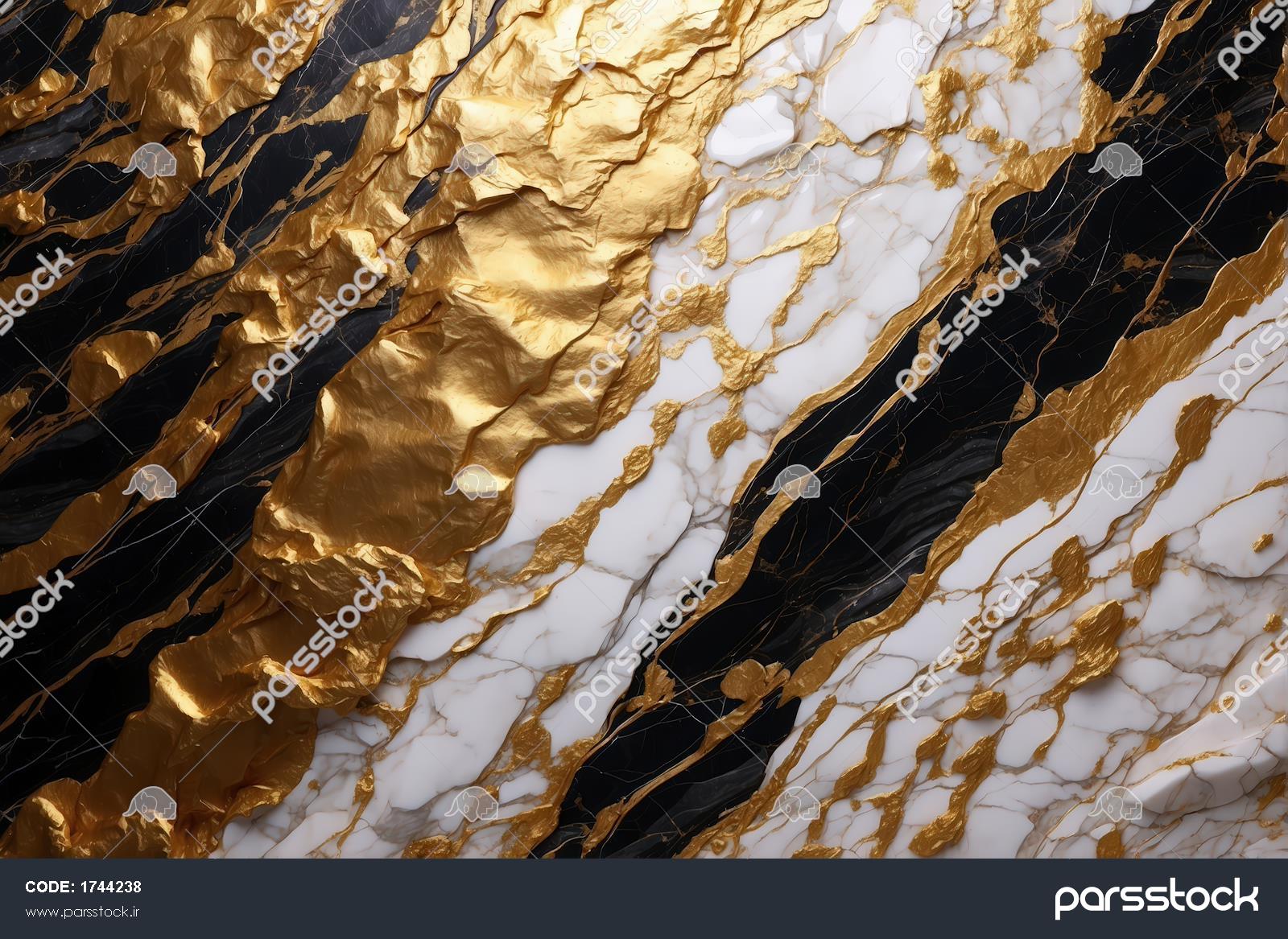 بافت لوکس مرمر سیاه و سفید با صفحات طلای خرد شده