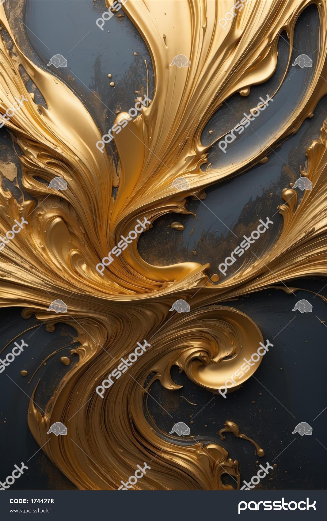 عکس اختصاصی عمودی: انعکاس موج‌های طلایی در زمینه خاکستری تیره، طرح سمفونی رنگ‌ها، مناسب دکوراسیون