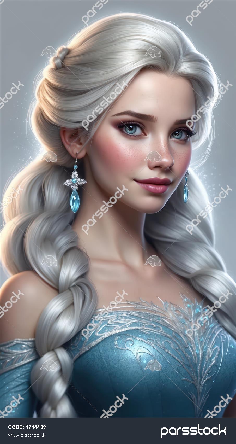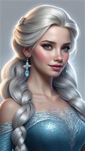 پرتره واقع‌گرایانه السا با موهای بلوند نقره‌ای و جواهرات فانتزی