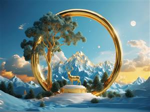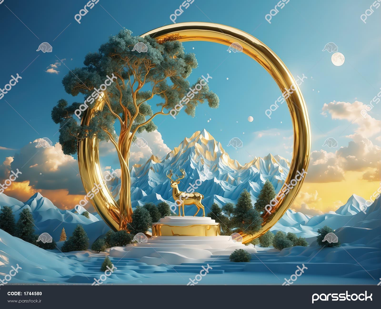 گوزن طلایی کوچک در قاب رینگ، موجهای آبی و کوه برفی، دکور روز رینگ طلایی با درخت با شکوه در مرکز، گوزن و کوهستان برفی در روز تندیس گوزن طلایی و درخت در قاب دایرهای با ماه زرین، تم آبی روشن قاب طلایی و گوزن در شب کوهستان برفی، طرح لوکس دکوراتیو تندیس گوزن و درخت طلایی در قاب رینگ ماه کامل، دکوراسیون شب قاب طلایی با دو گوزن و ماه کامل در شب، طرح لوکس کوهستانی تندیس گوزن طلایی در حلقه فلزی در شب کوهستان برفی طرح دکوراتیو گوزن طلایی در قاب دایرهای دره و ماه کامل کوهستان سهبعدی و گوزن در حلقه طلایی، مهتاب و درختان طلایی تصویر لوکس گوزن طلایی در برف و ماه آبی با تزیین درخت کاج مشاهده همه