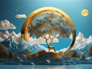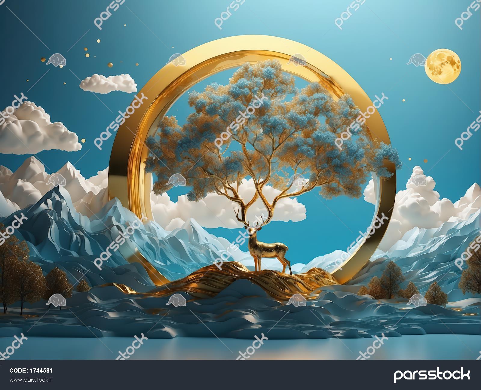 دکوراتیو گوزن طلایی در قاب رینگ، کوه برفی و درخت در روز آفتابی گوزن طلایی کوچک در قاب رینگ، موجهای آبی و کوه برفی، دکور روز قاب طلایی و گوزن در شب کوهستان برفی، طرح لوکس دکوراتیو تندیس گوزن طلایی در حلقه فلزی در شب کوهستان برفی تندیس گوزن و درخت طلایی در قاب رینگ ماه کامل، دکوراسیون شب قاب طلایی با دو گوزن و ماه کامل در شب، طرح لوکس کوهستانی تندیس گوزن طلایی و درخت در قاب دایرهای با ماه زرین، تم آبی روشن طرح دکوراتیو گوزن طلایی در قاب دایرهای دره و ماه کامل کوهستان سهبعدی و گوزن در حلقه طلایی، مهتاب و درختان طلایی تصویر لوکس گوزن طلایی در برف و ماه آبی با تزیین درخت کاج مشاهده همه
